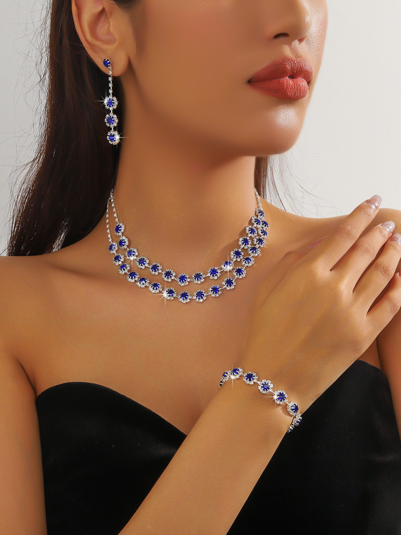 Color: T-0032-3 royal blue snowflake necklace set