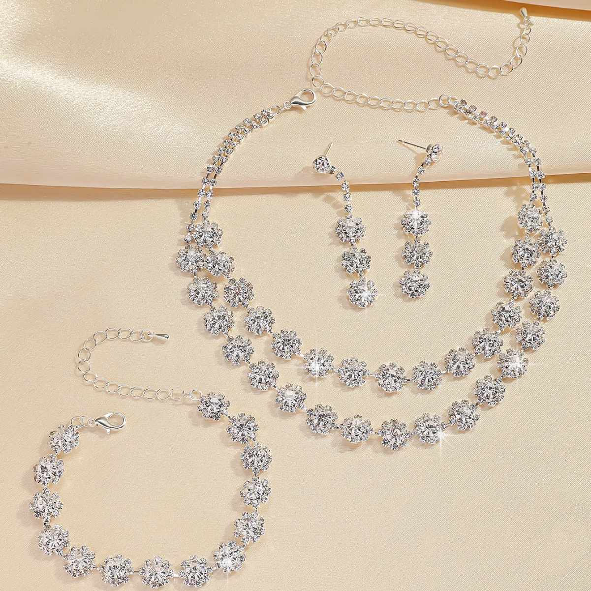 Color: T-0032-1 silver snowflake necklace set