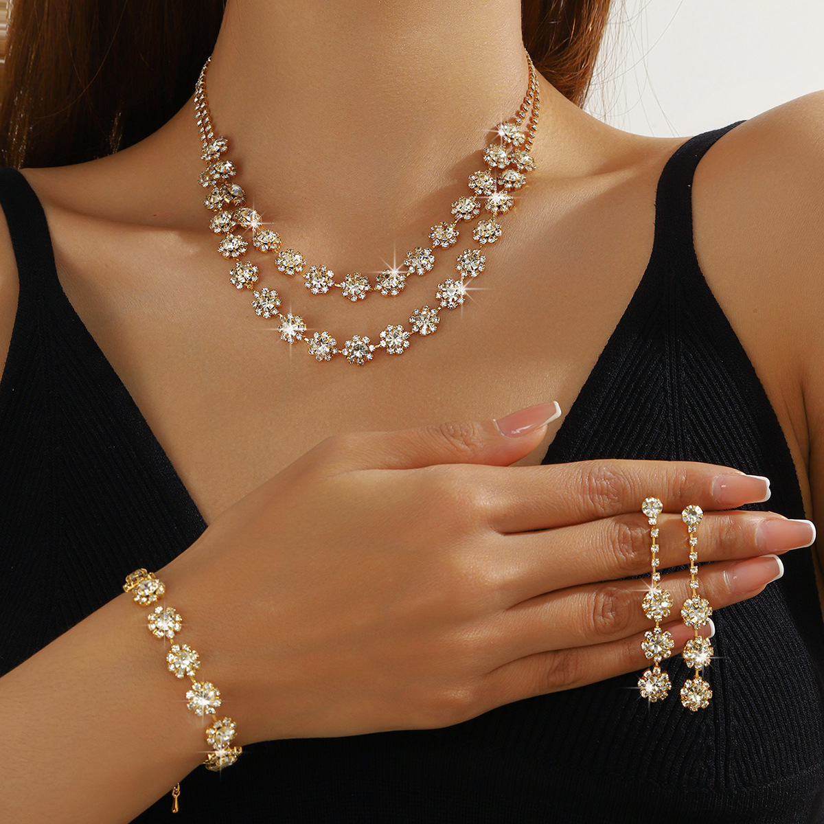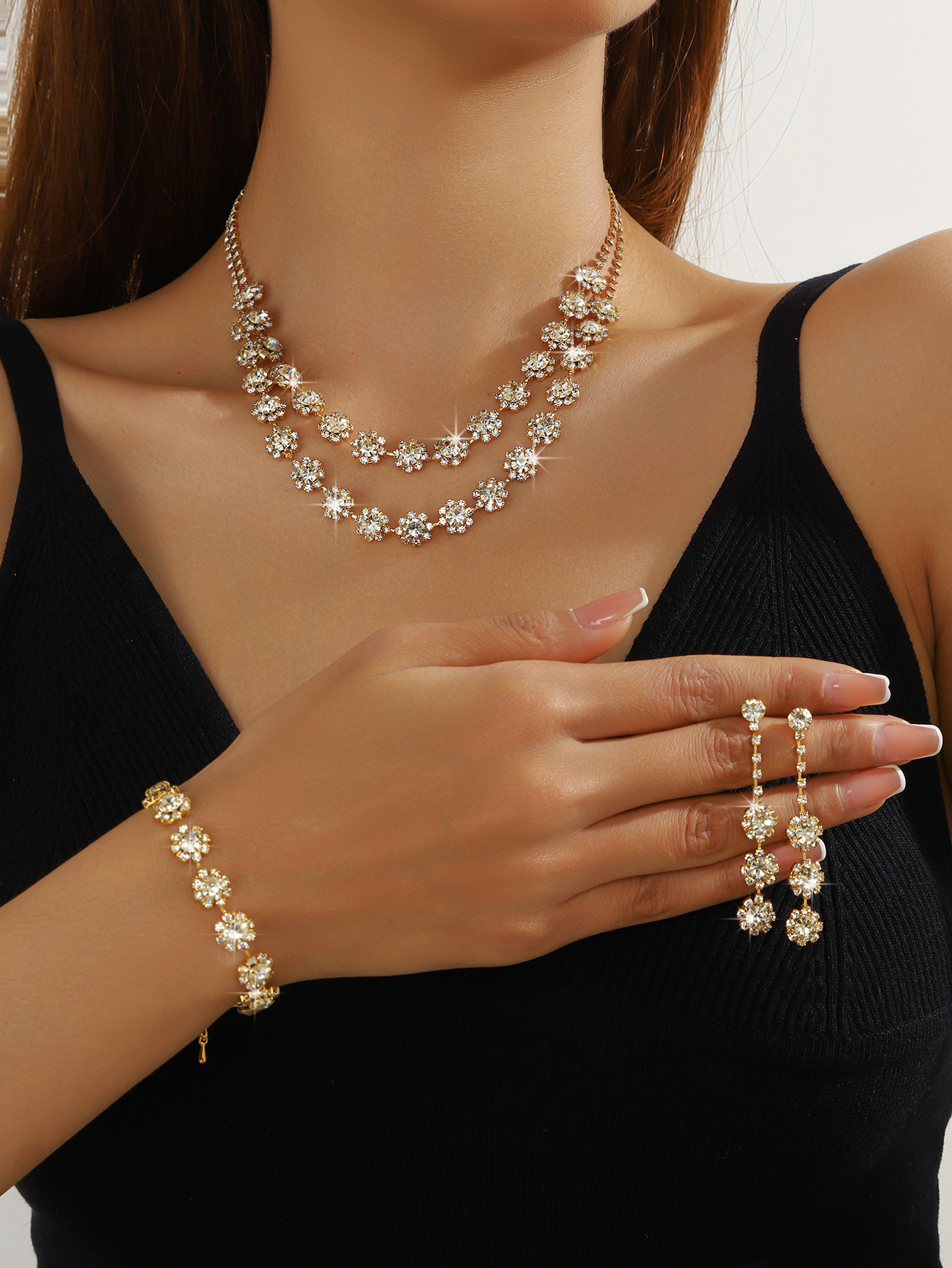 Color: T-0032-6 gold white diamond snowflake necklace set