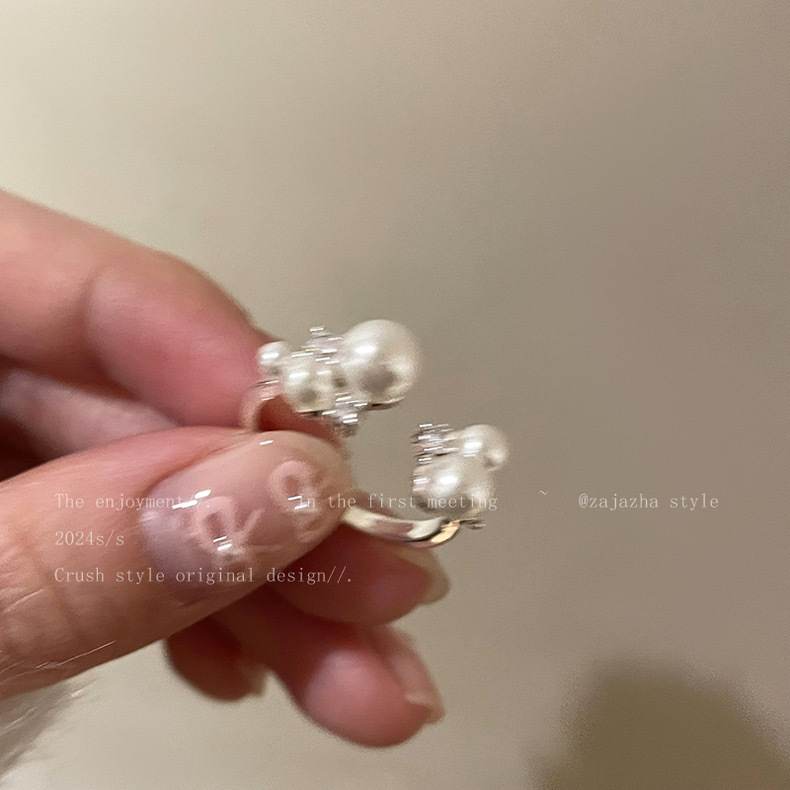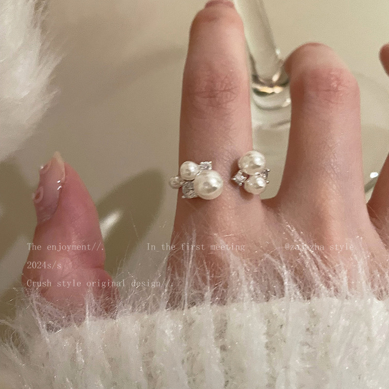 Pearl Zircon Open Ring Women's Light Luxury High-end Food Finger Ring Instagram Style Niche Design Fashionable Distinctive Ring