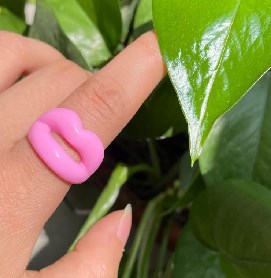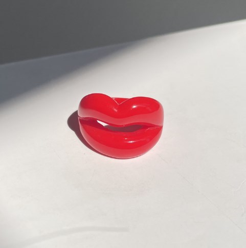 2024 New European and American Cute Funny Glitter Lip Ring Resin Ring Casual Personalized Ring