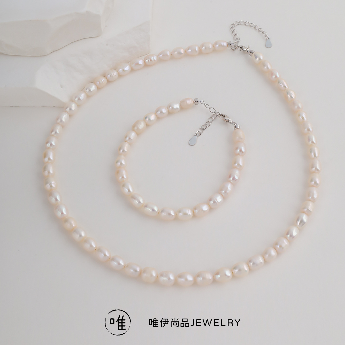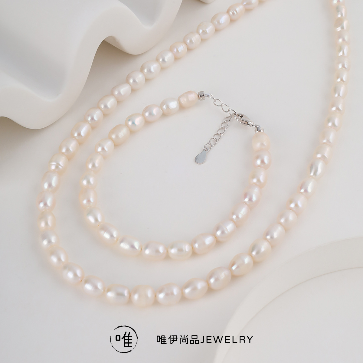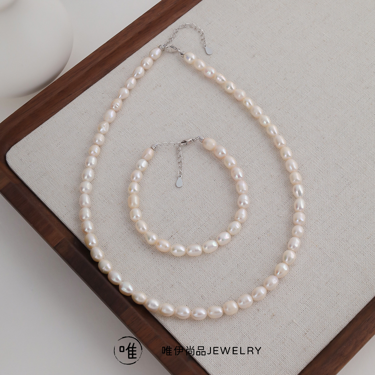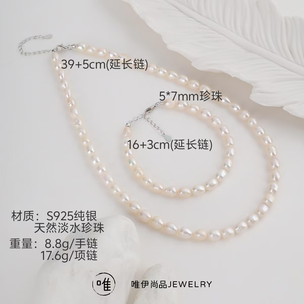 S925 sterling silver natural freshwater pearl high color value simple soft temperament necklace bracelet suit wholesale