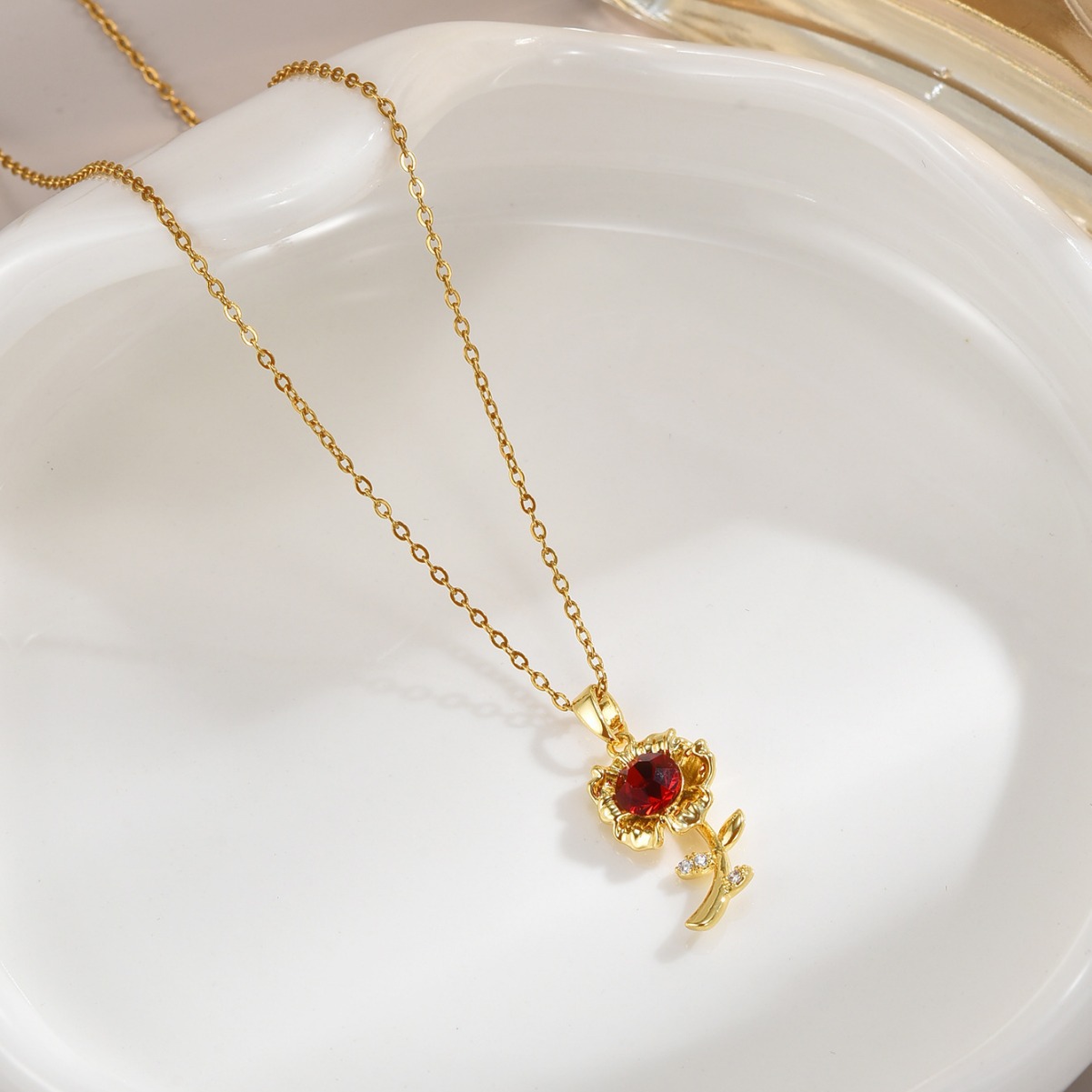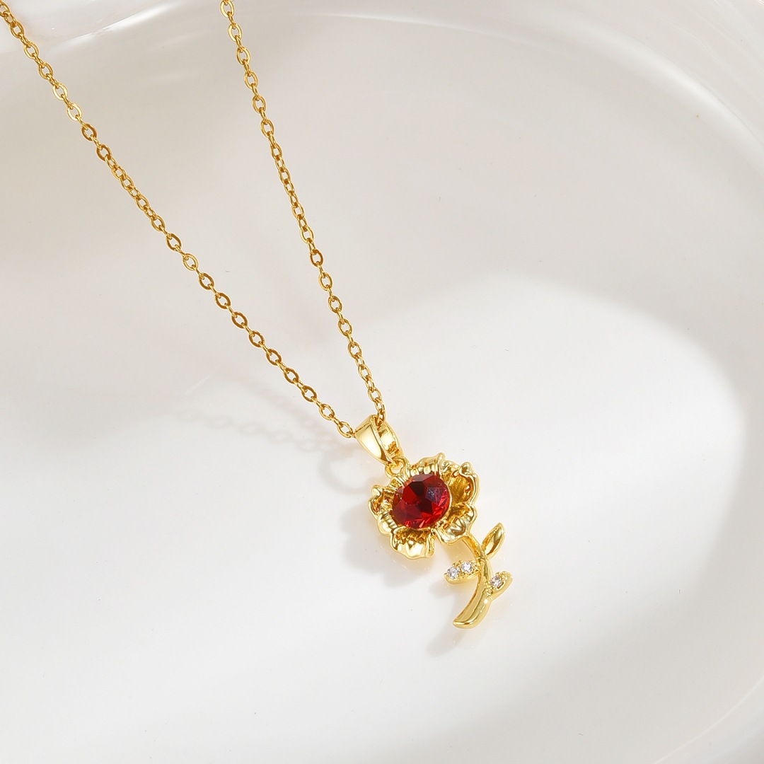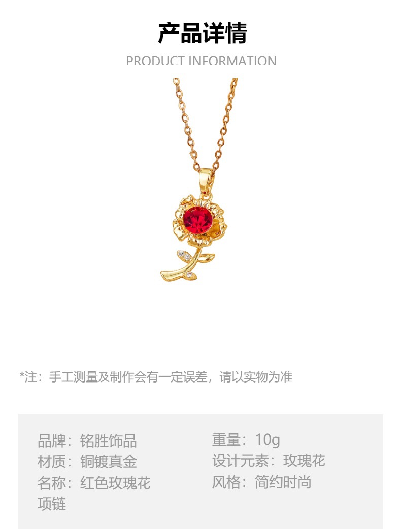 2024 new design clavicle chain red rose necklace women's high-end accessories fashion all-match do not fade