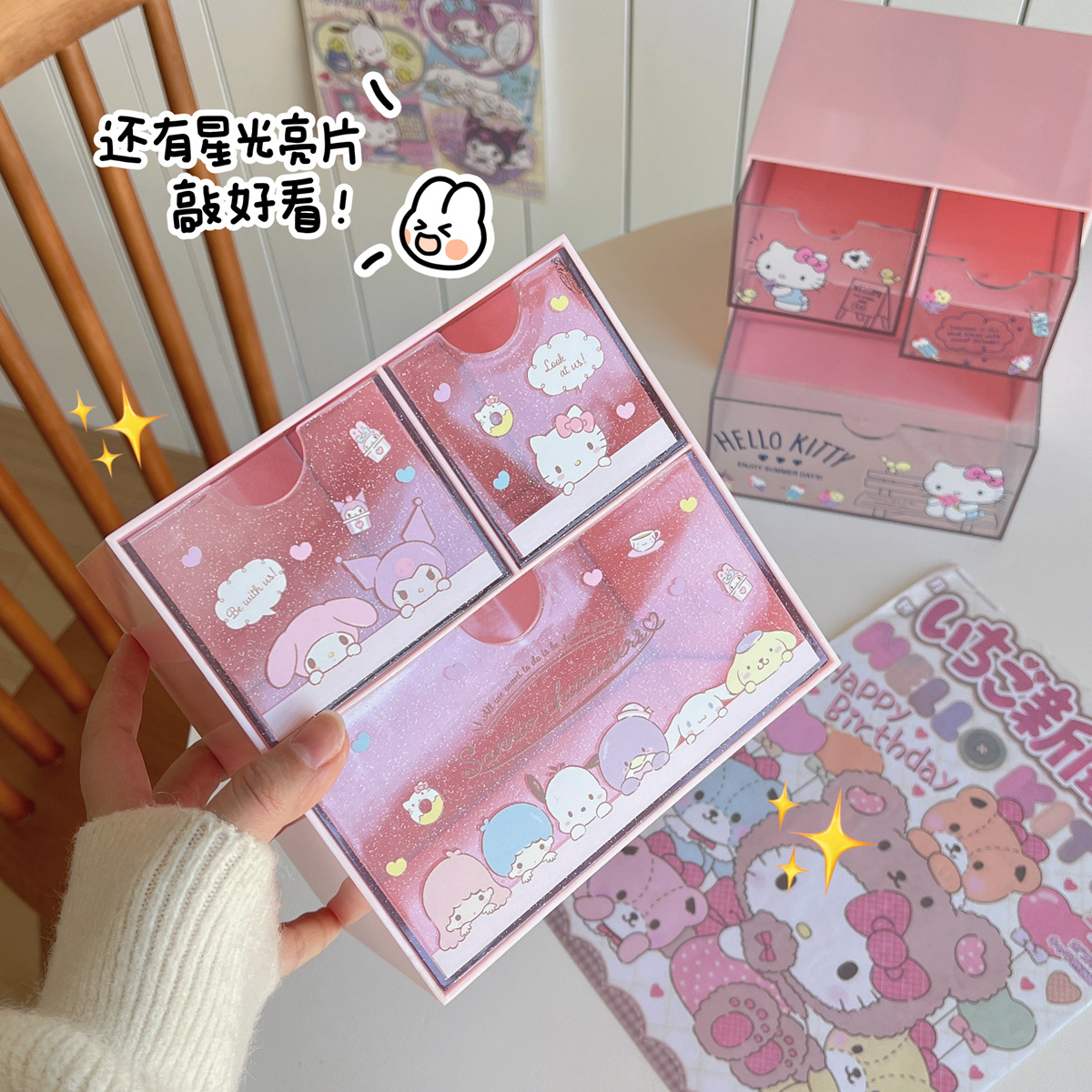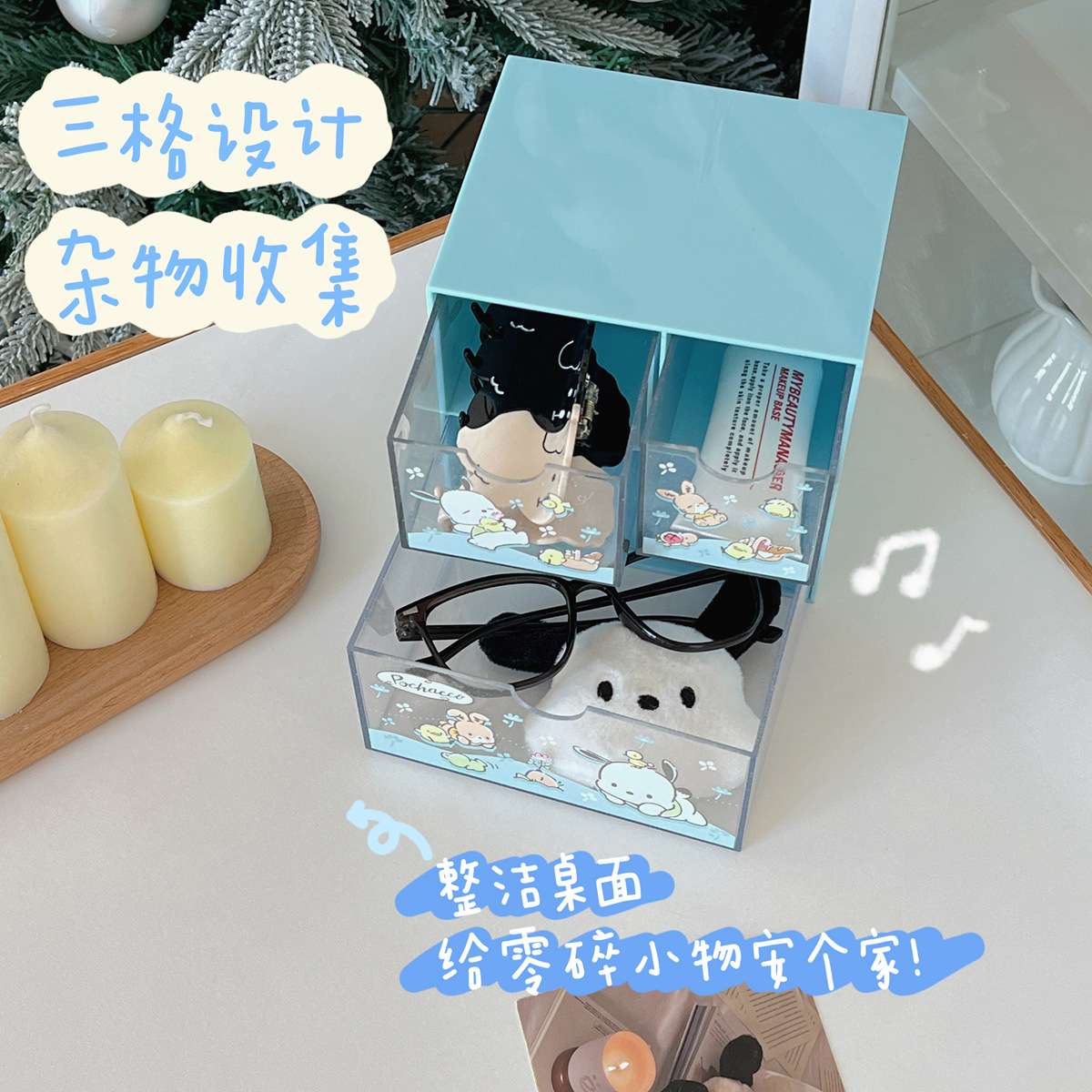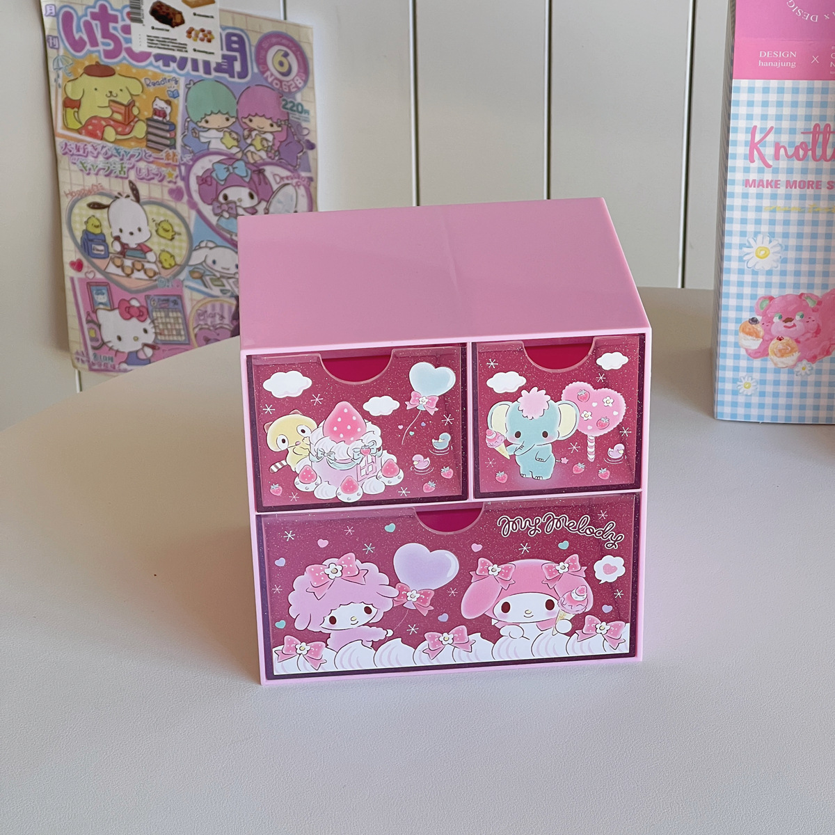 Color: Three-compartment glitter drawer storage-melody and kulomi