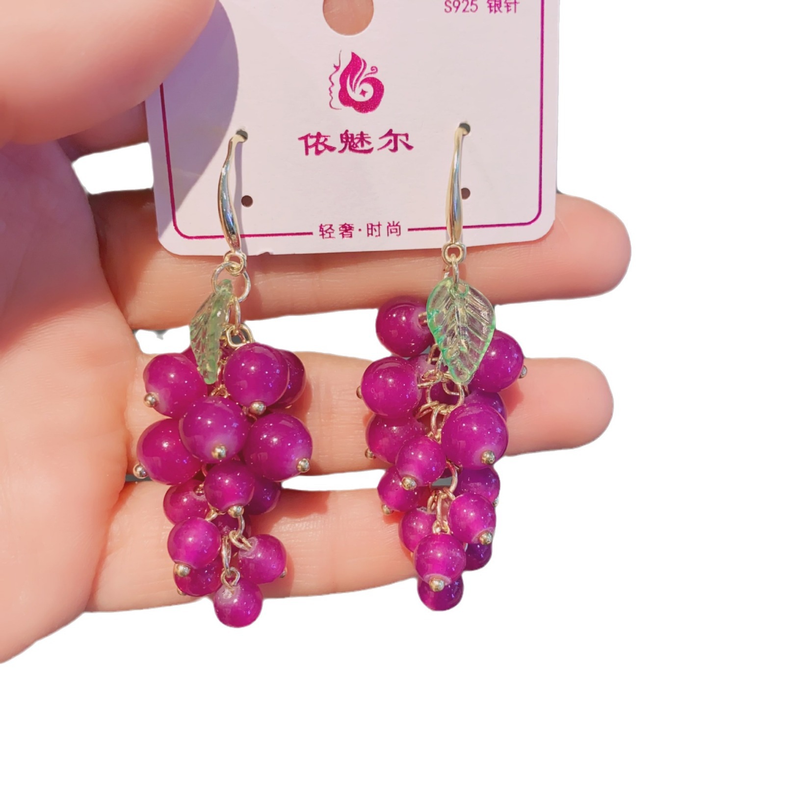 2024 New Summer Fresh Fruit Series Sweet All-match Grape Distinctive Ear Hook Earrings for Niche Earrings