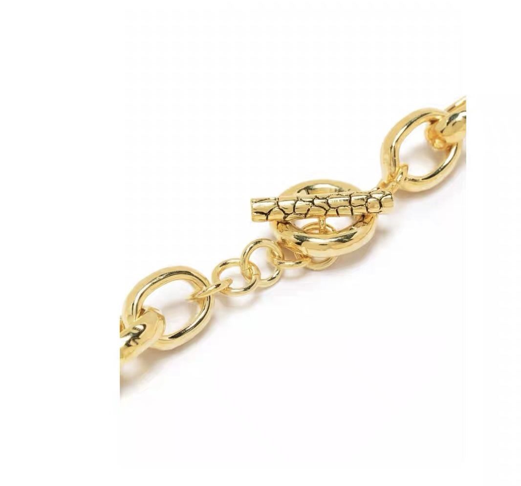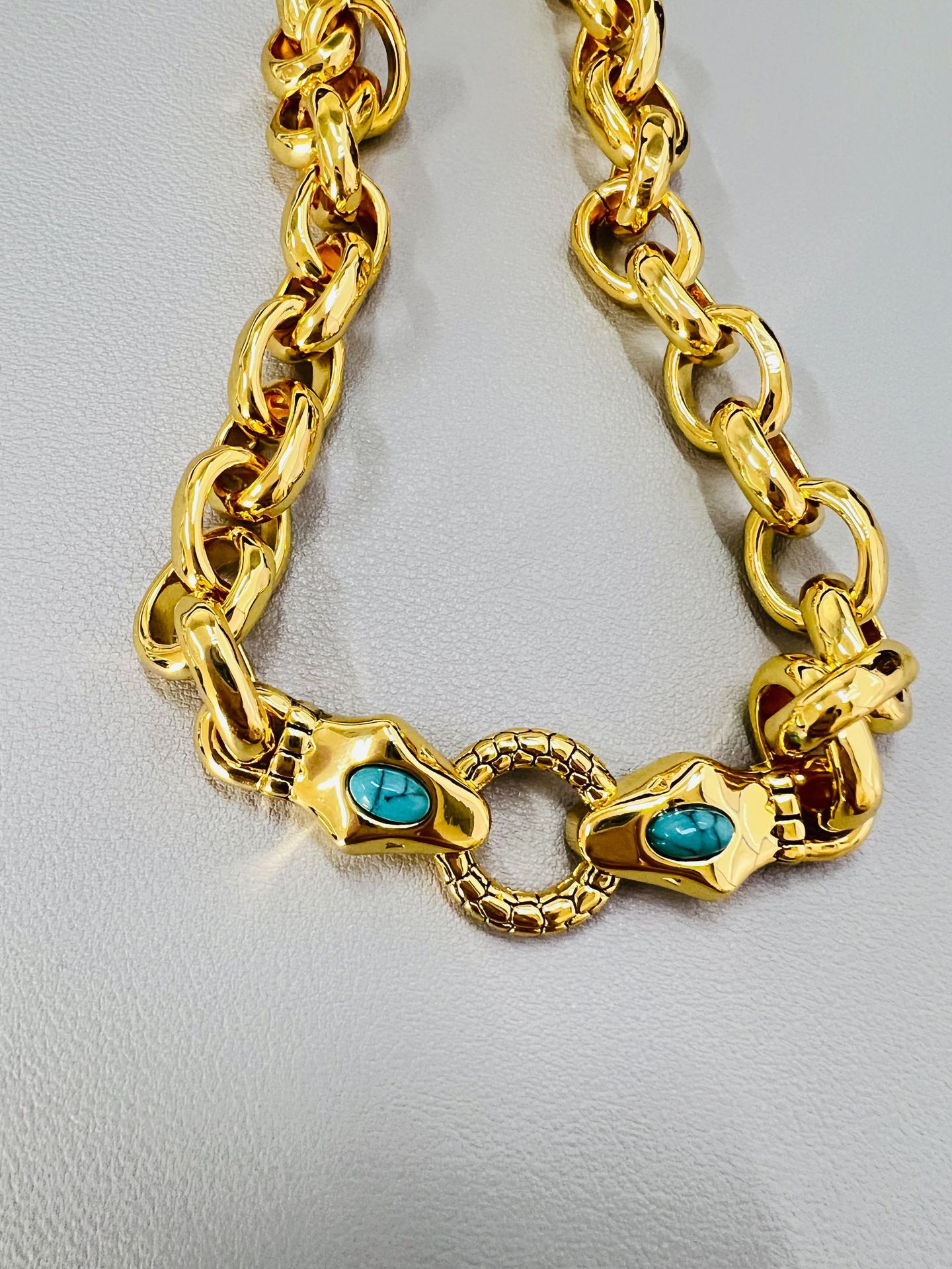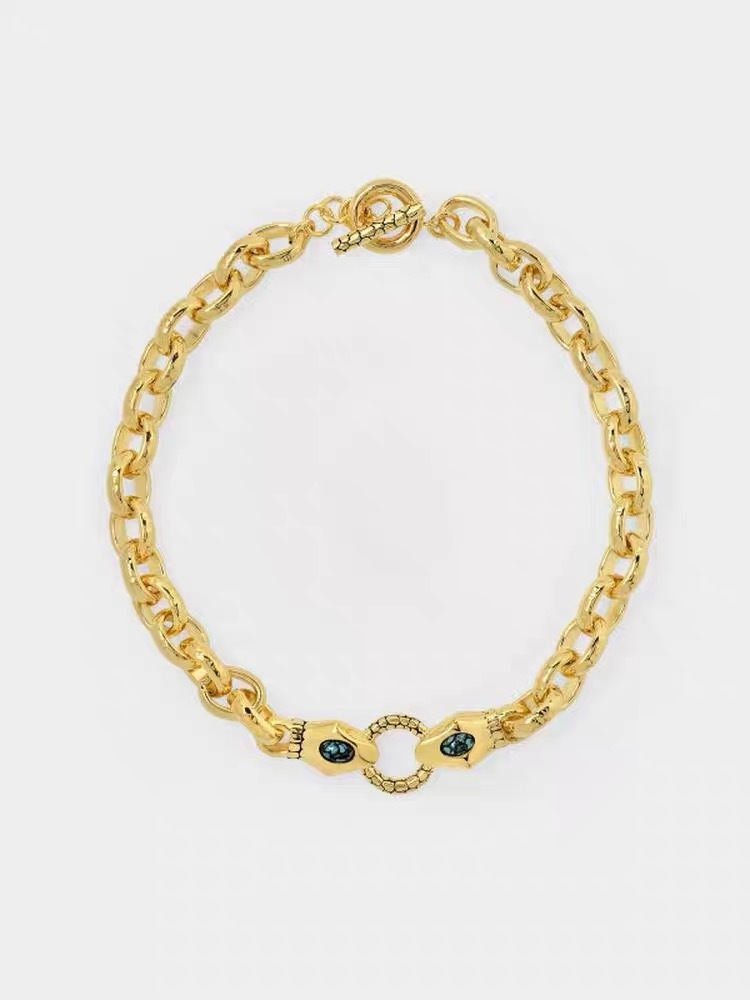 Turquoise Metal Heavy Gold Necklace Exaggerated Personality Heavy Ancient Emerald Bite Ring Snake Head Universal Buckle Jewelry Necklace