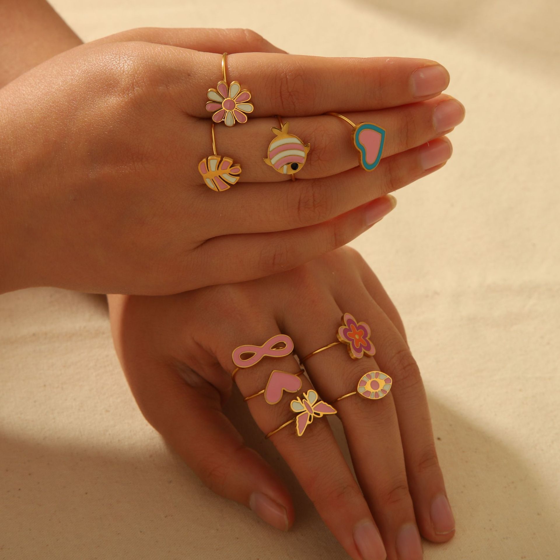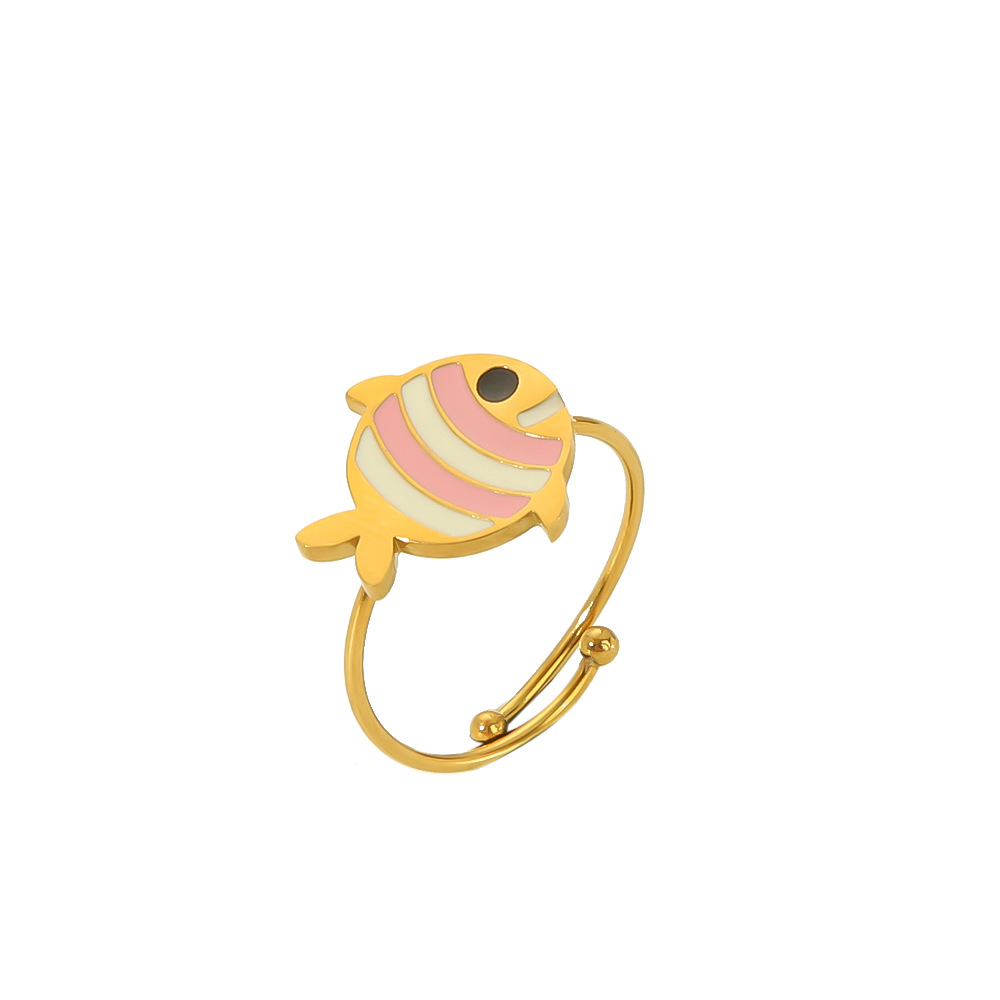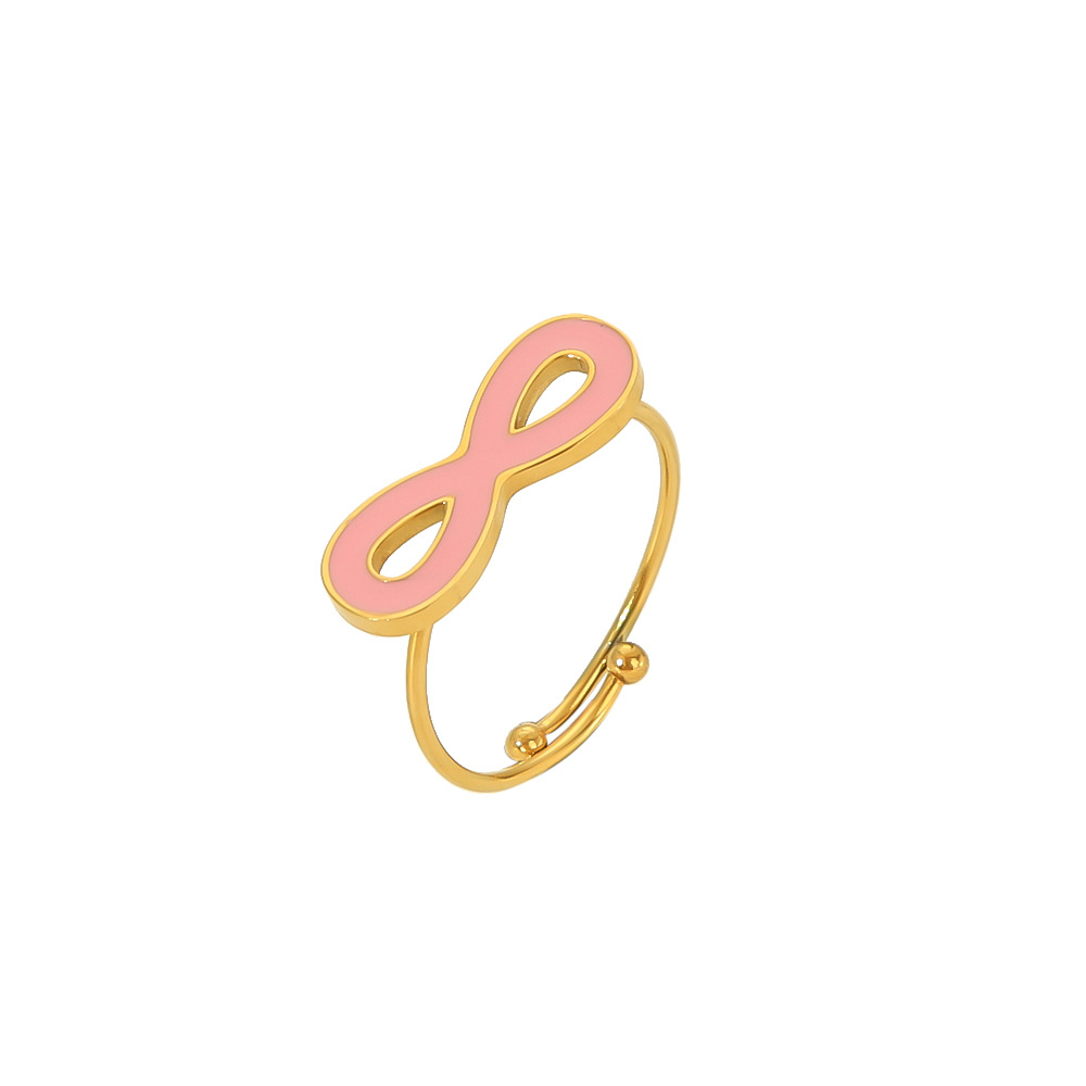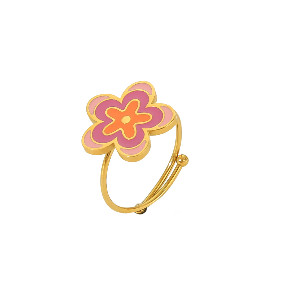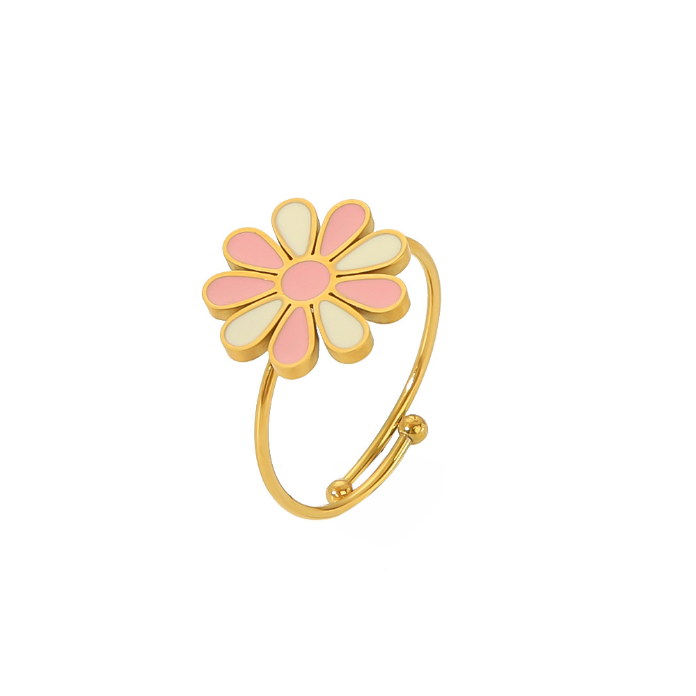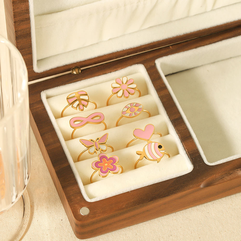 Peach powder drop oil titanium steel ring female minority high sense love flowers do not fade stainless steel ring ring wholesale