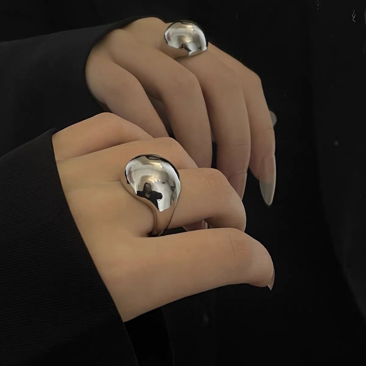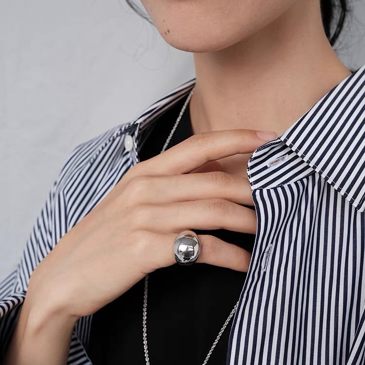 24 New Retro Metal Ball Ring Korean Oval Mirror Light Luxury Sweet Cool Style Distinctive Oval Ring
