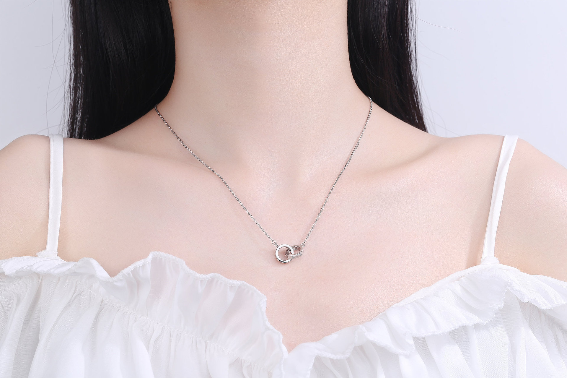 Women's Korean-style Double-ring Necklace Women's Necklace Diamond-encrusted Fashion Clavicle Chain Women's Pendant Simple Sexy Accessories Internet Popular Creative