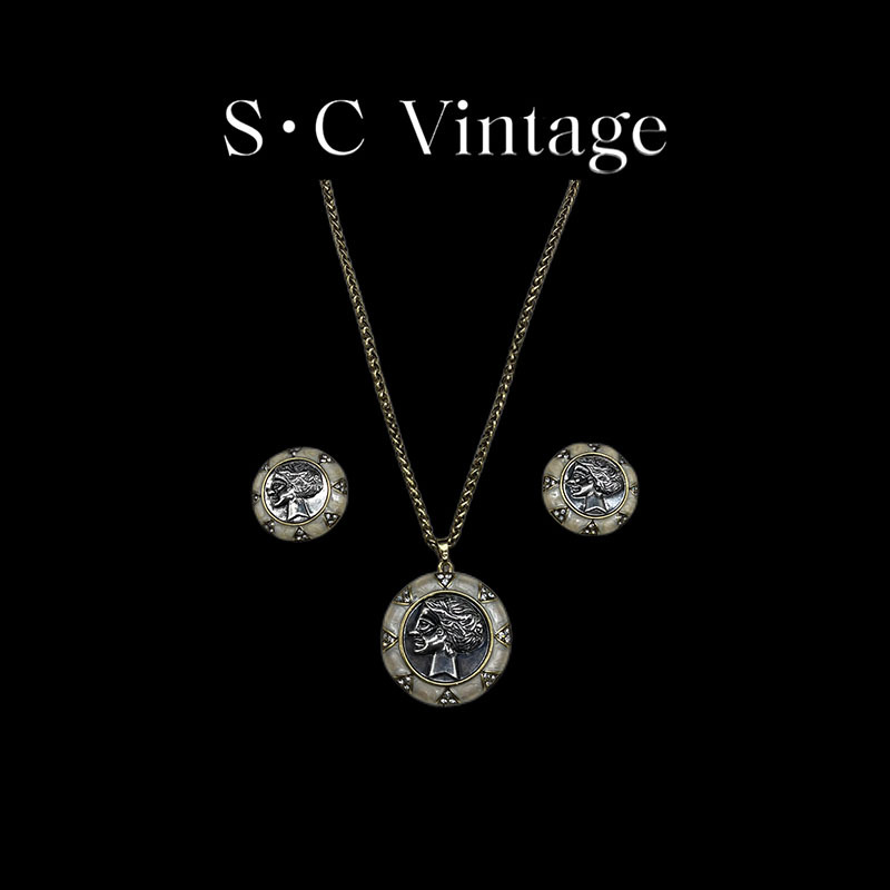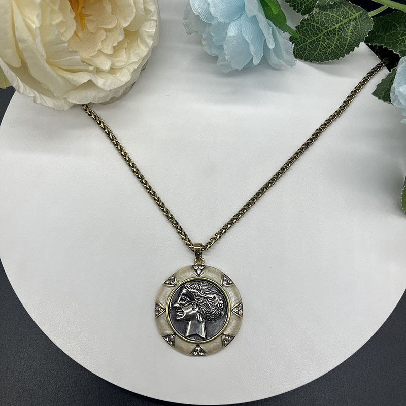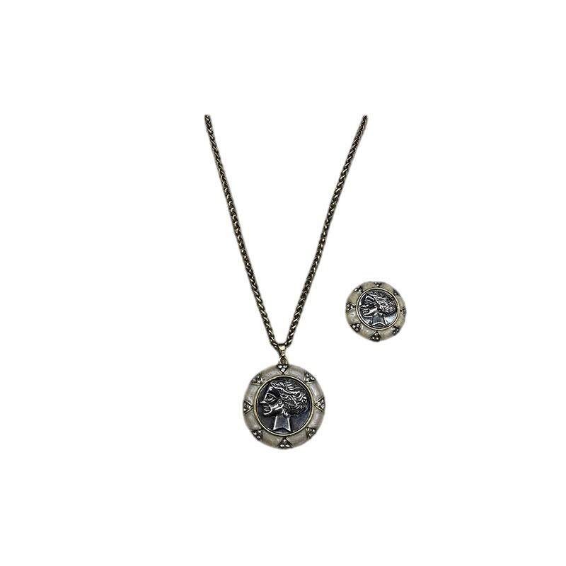 Qingdao Middle Ancient Vintage Ancient Greece Float Goddess Ancient Coin Necklace Personality Elegant Necklace Earring Set