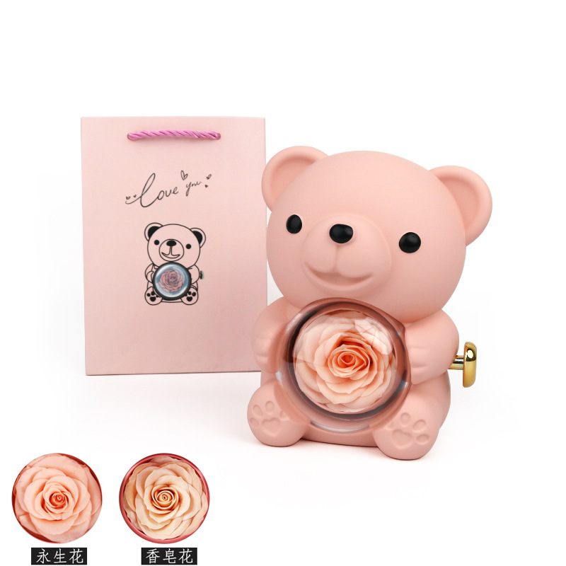 Specification model: Pink/preserved flower; hug bear rose box + color box + handbag