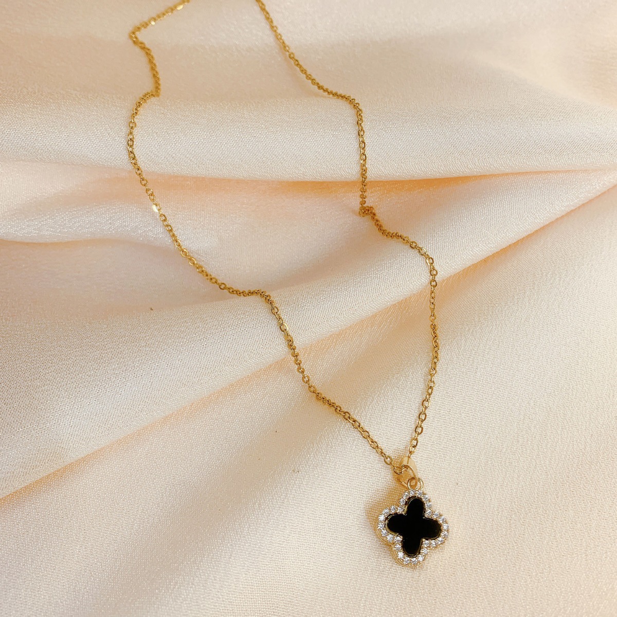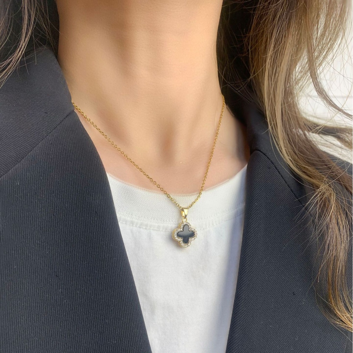 Color: Xl409 black and white double-sided four-leaf clover gold necklace