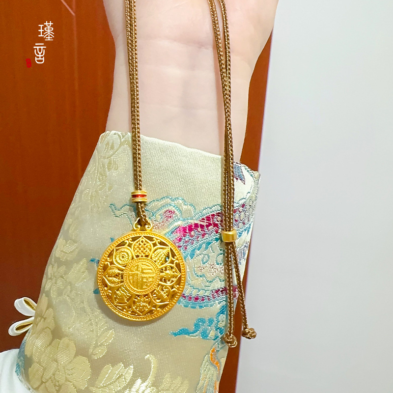 Long-standing sand gold auspicious eight treasures compass pendant necklace lucky hollow disc Italian rope necklace women's sweater