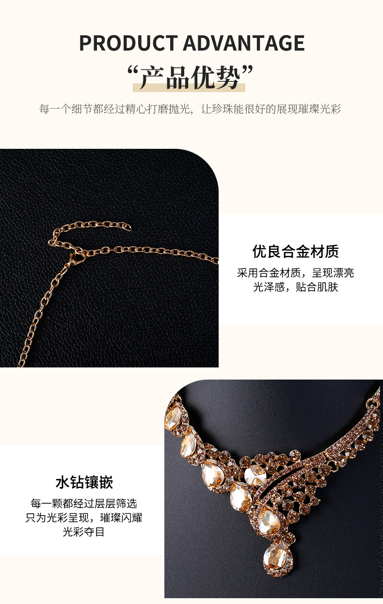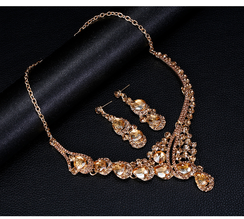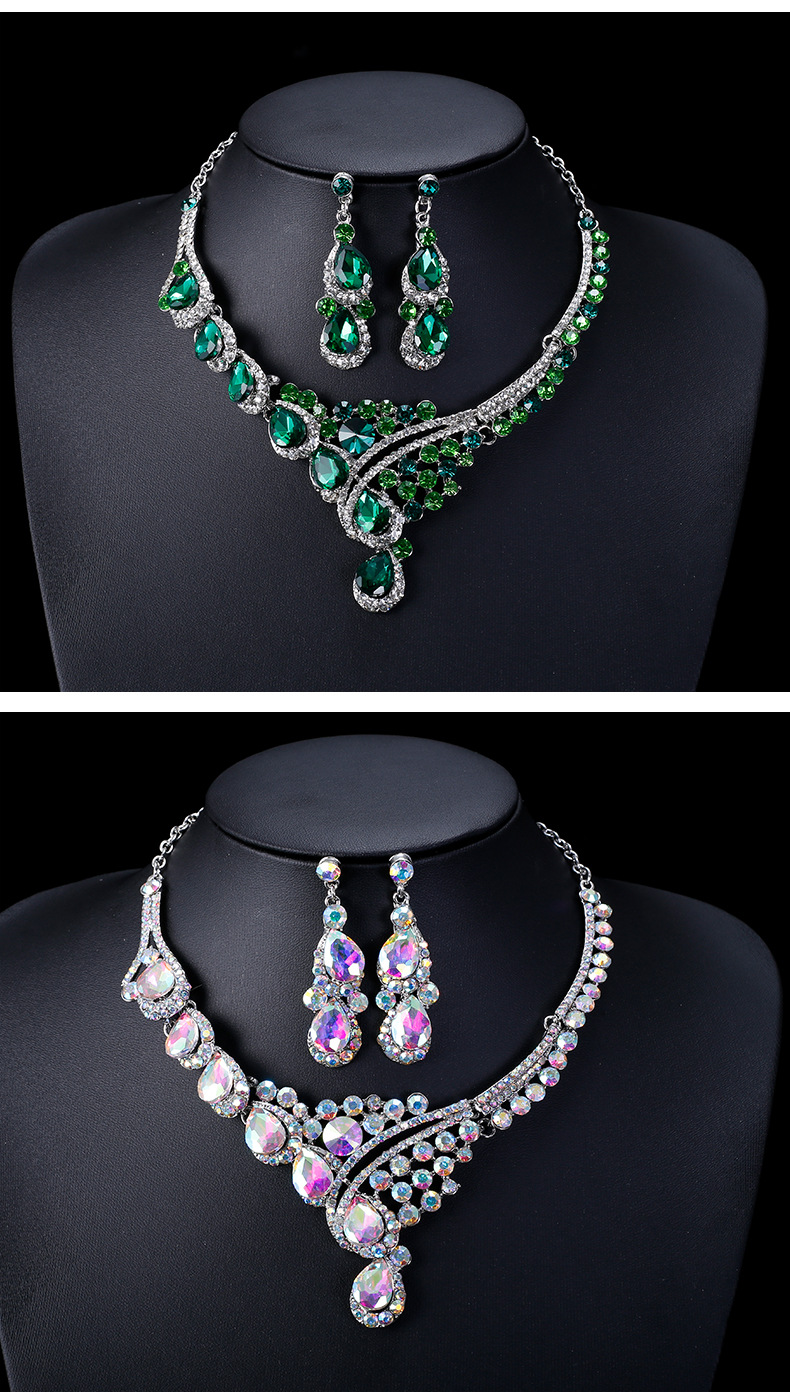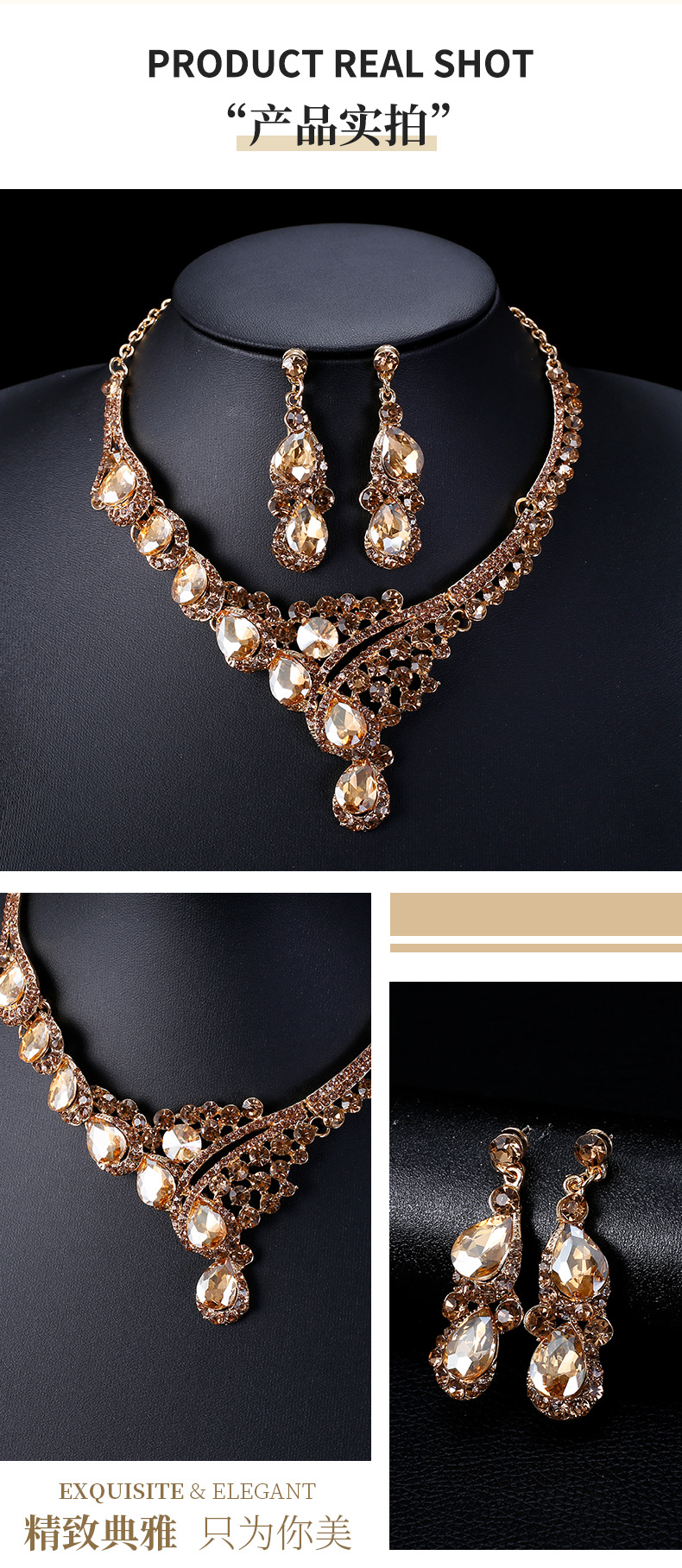 European and American Retro Crystal Gemstone Necklace Earrings Set Women's Fashionable Elegant Bridal Jewelry Accessible Luxury Jewelry Collarbone