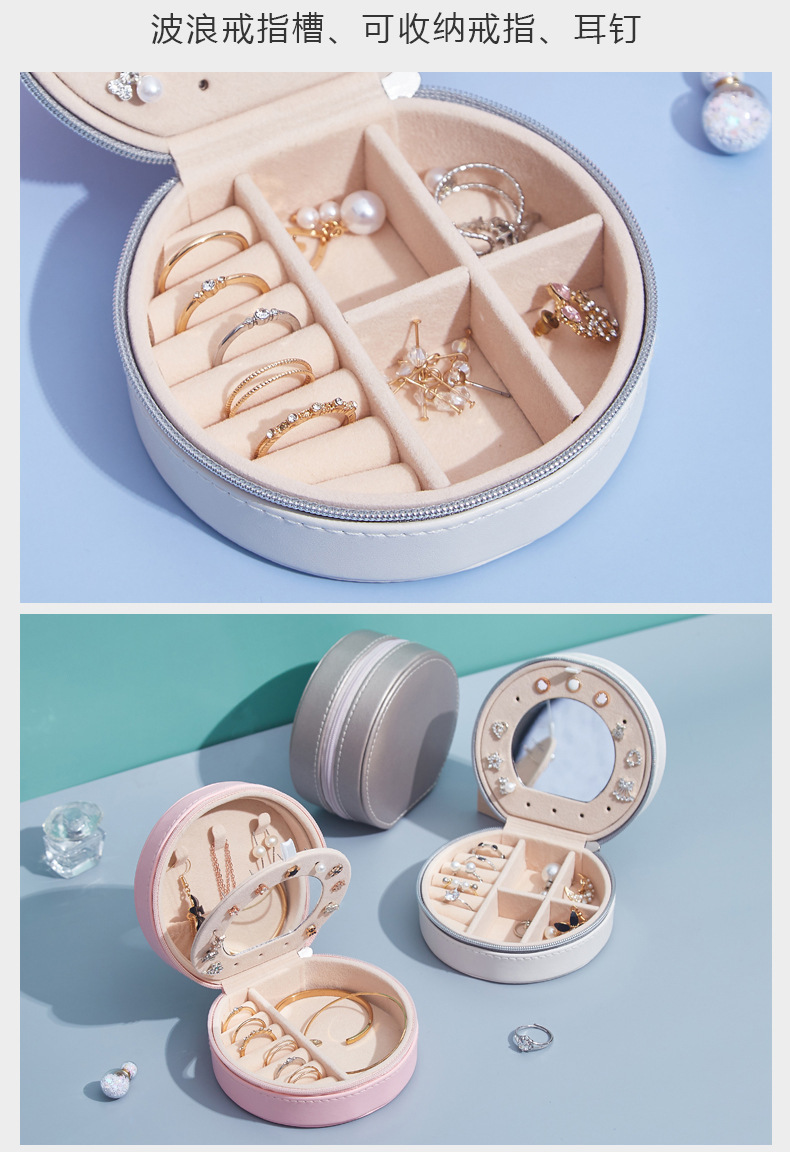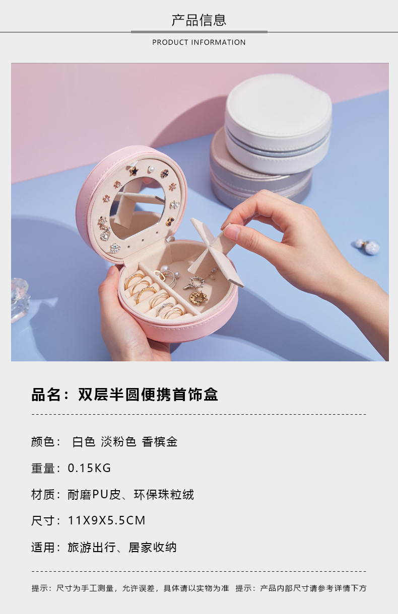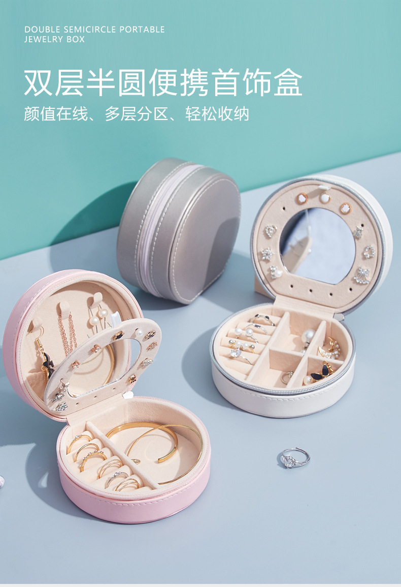 Cross-border double-layer simple portable round jewelry box ring earrings earrings jewelry jewelry box with mirror spot