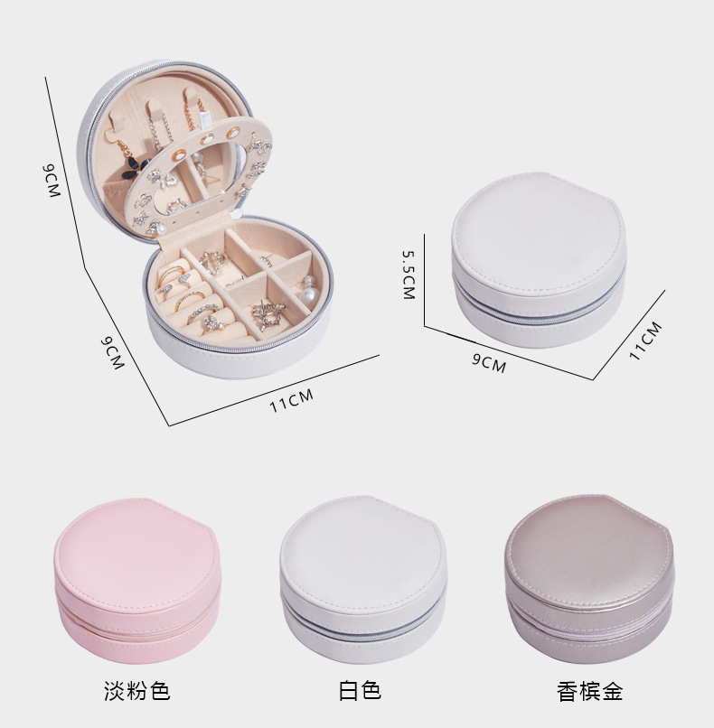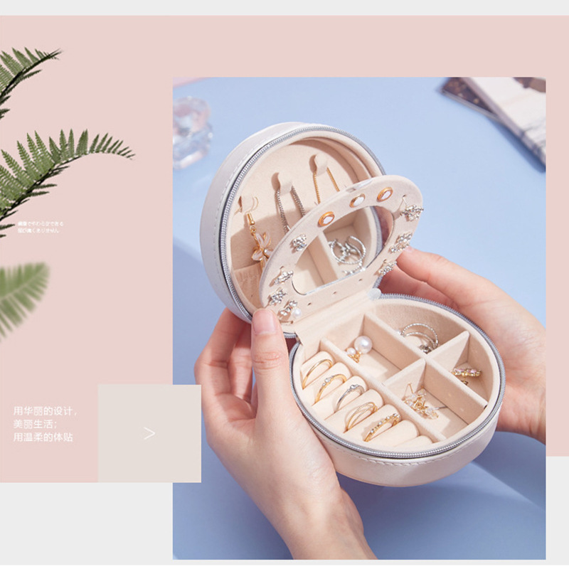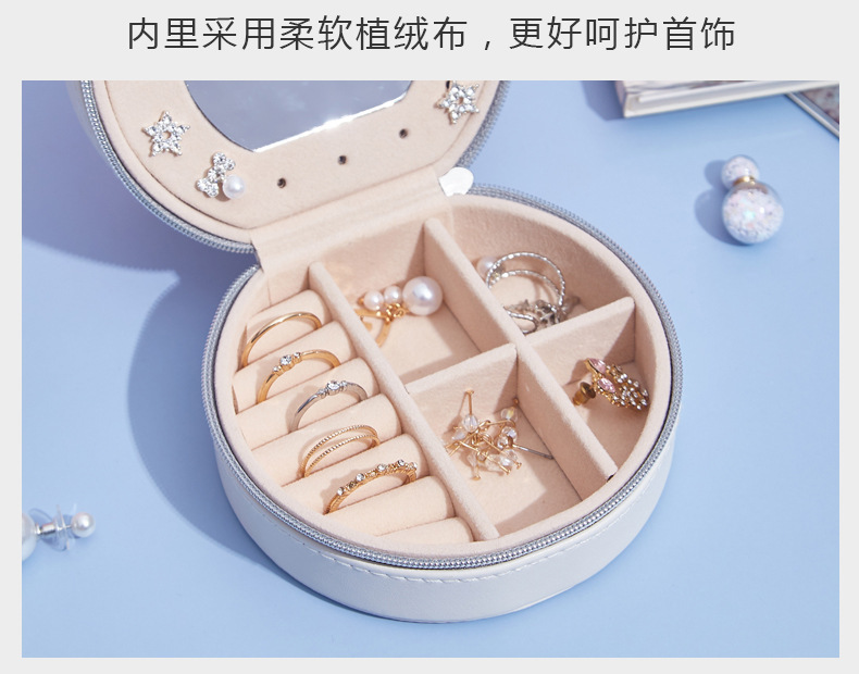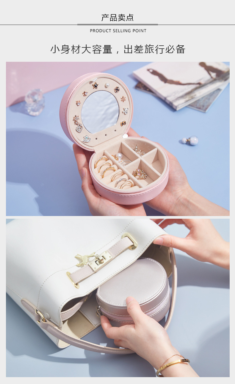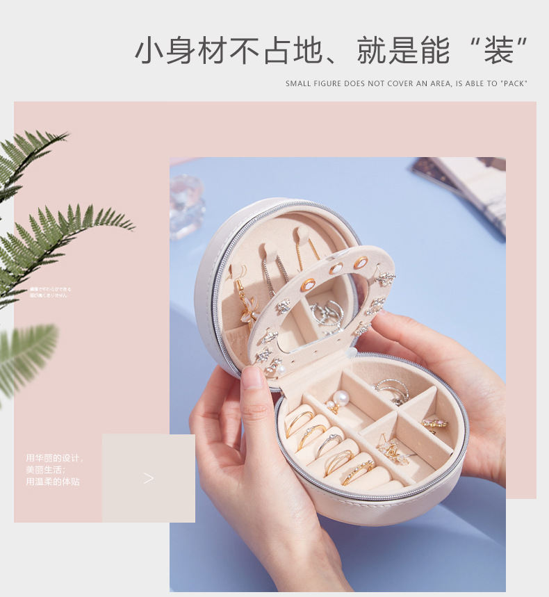 Cross-border double-layer simple portable round jewelry box ring earrings earrings jewelry jewelry box with mirror spot