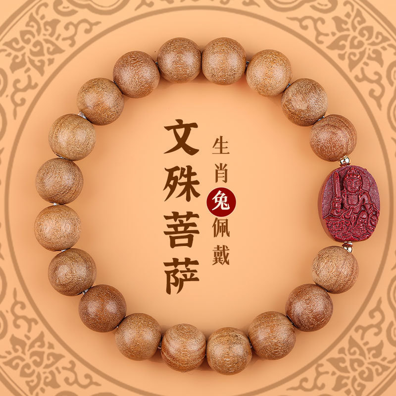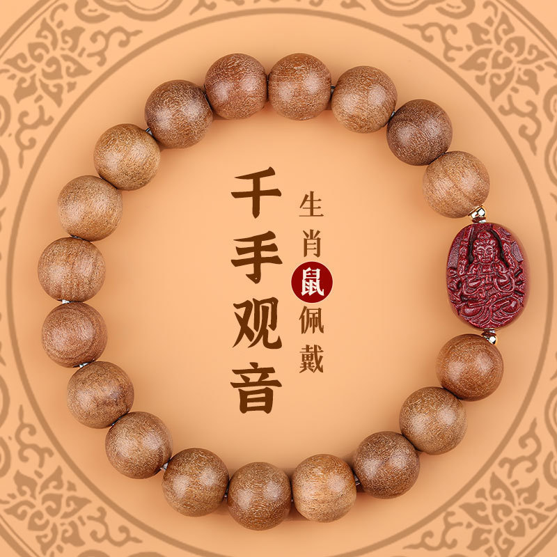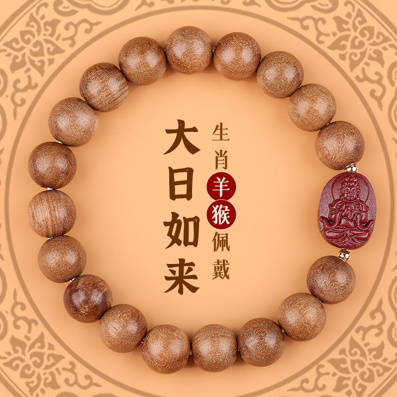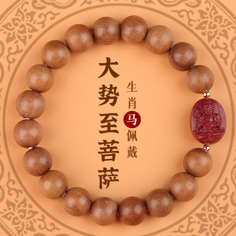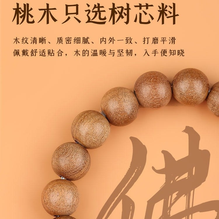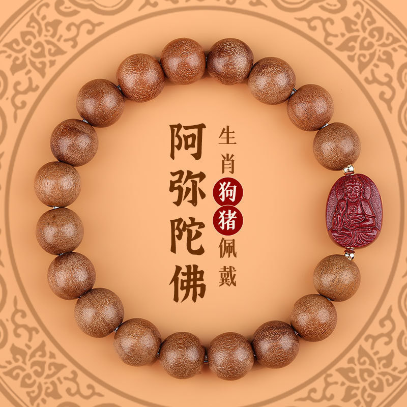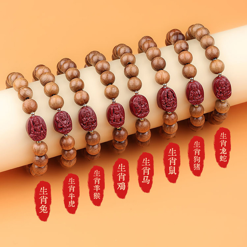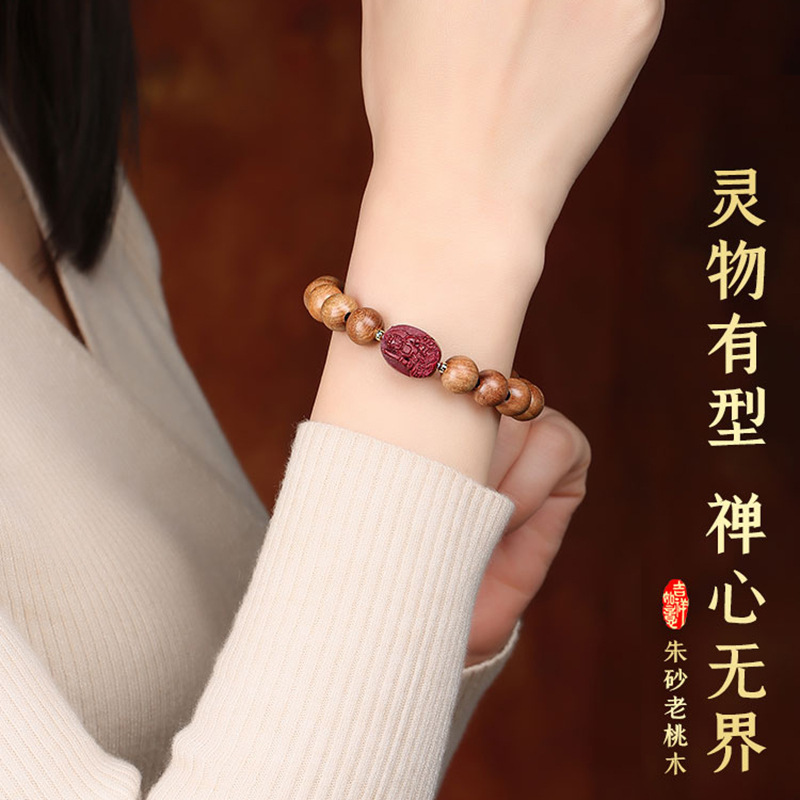 New Natural Old Peach Wood Bracelet Cinnabar Bracelet Couple Men and Women's Zodiac Buming Buddha Beads Wholesale