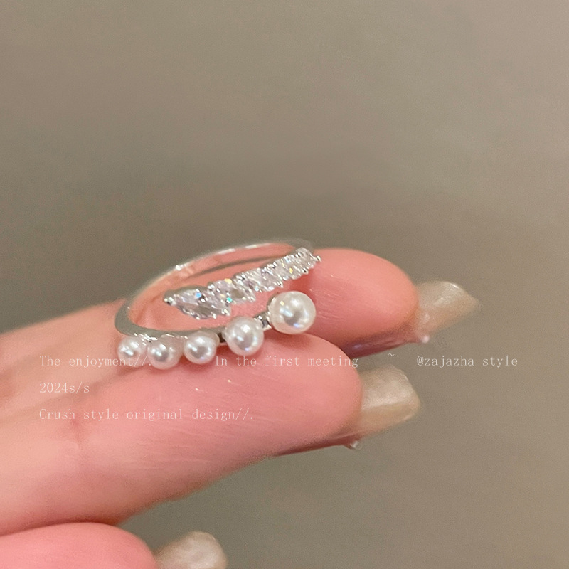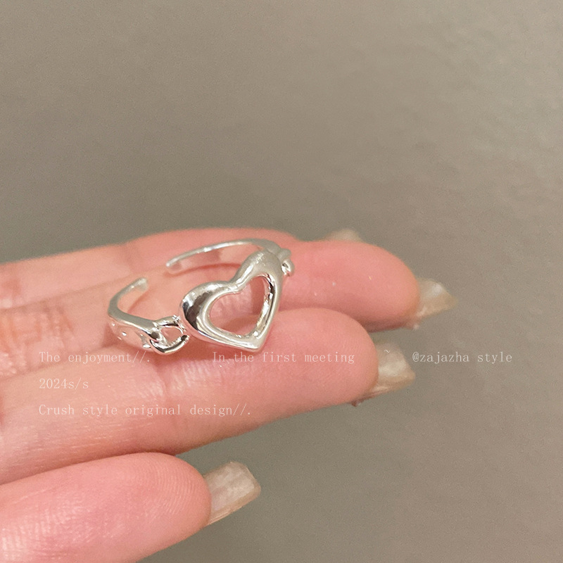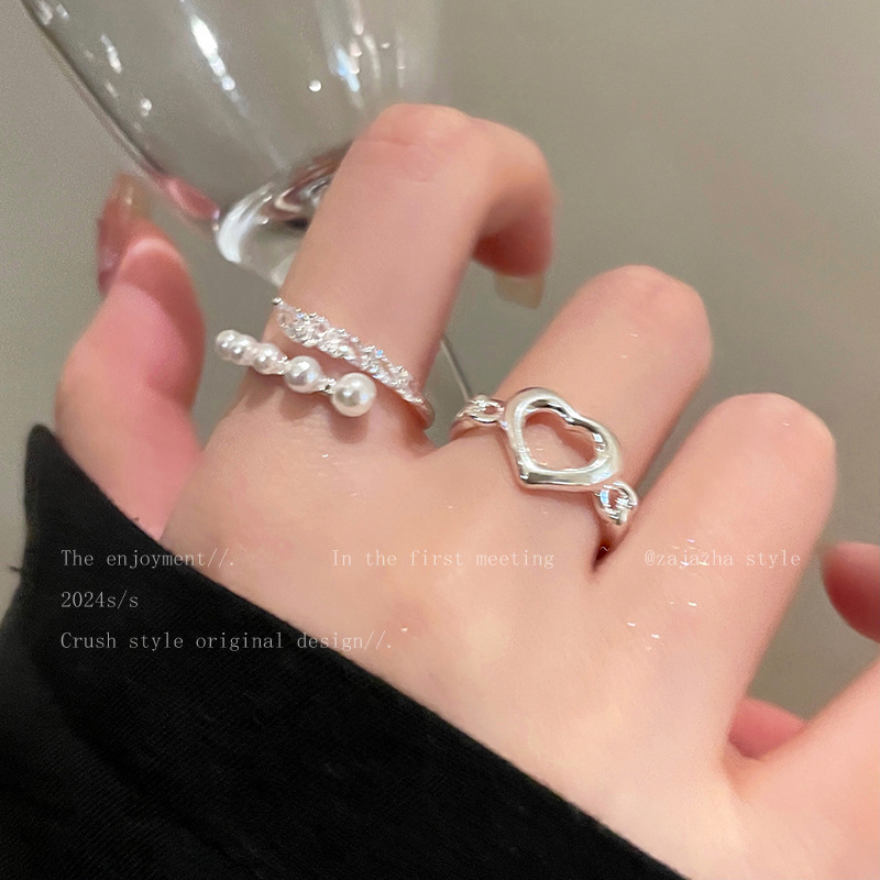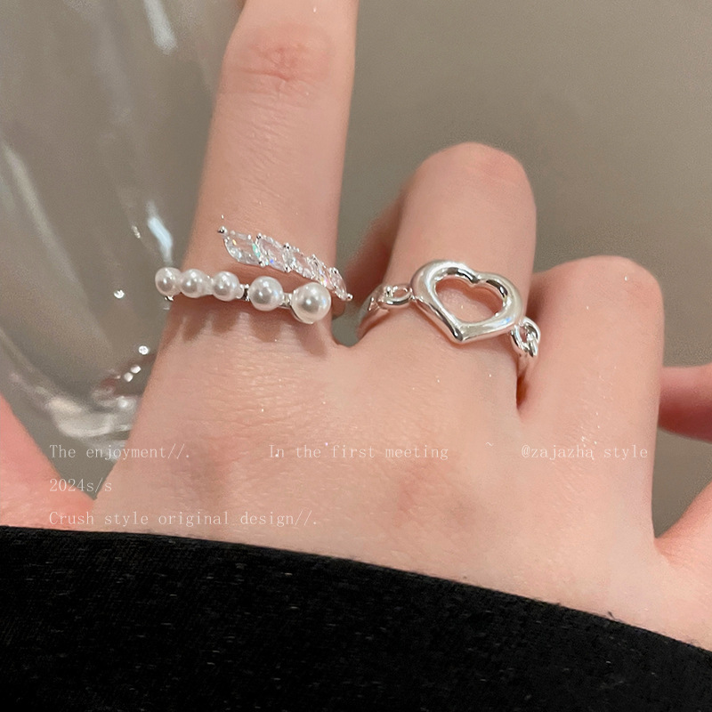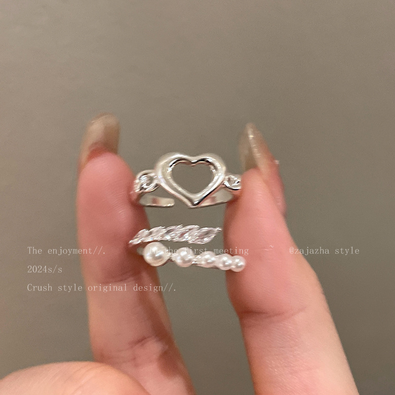 Hollow Pearl Love Ring Two-piece Women's Opening Adjustable Niche Finger Ring Personalized Fashion All-match Ring