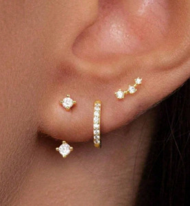 Color: Gold multi-piece set of 3 blue eye diamond earrings