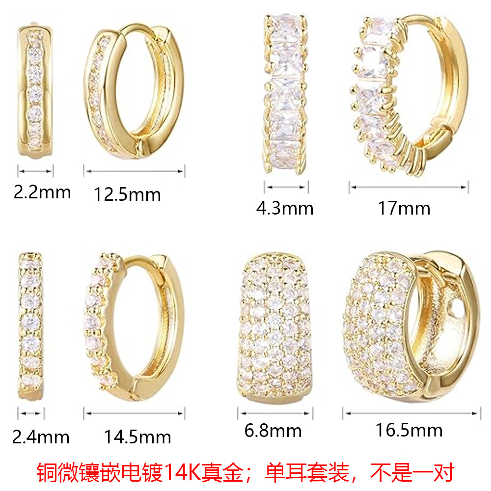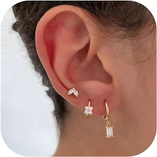 Color: Gold inlaid zirconium leaf stone drop earrings and earrings, 3 pairs of 6 pieces