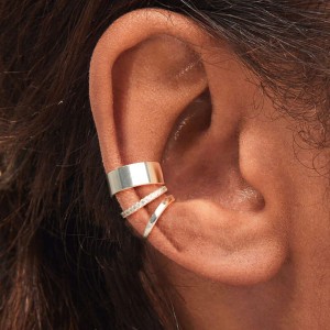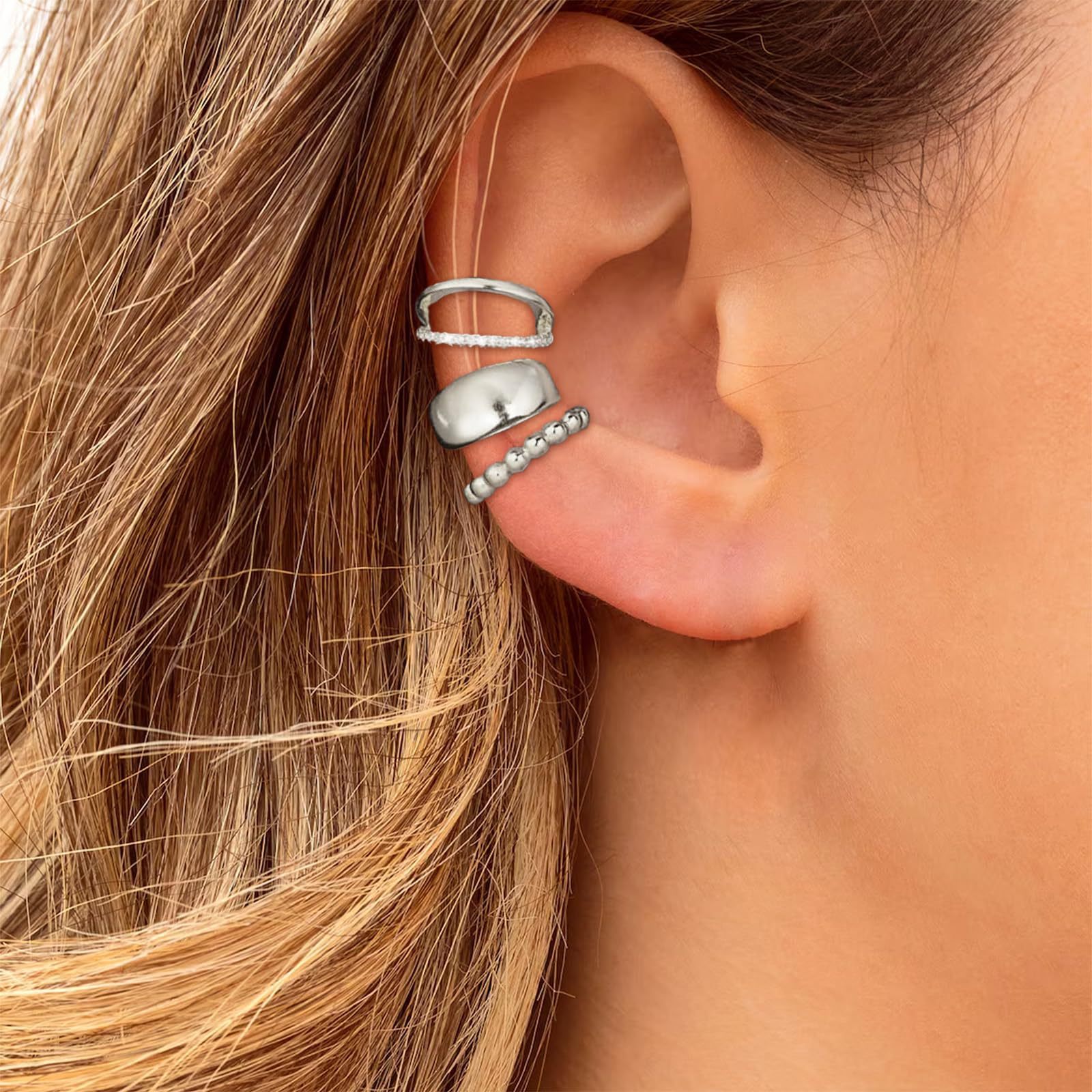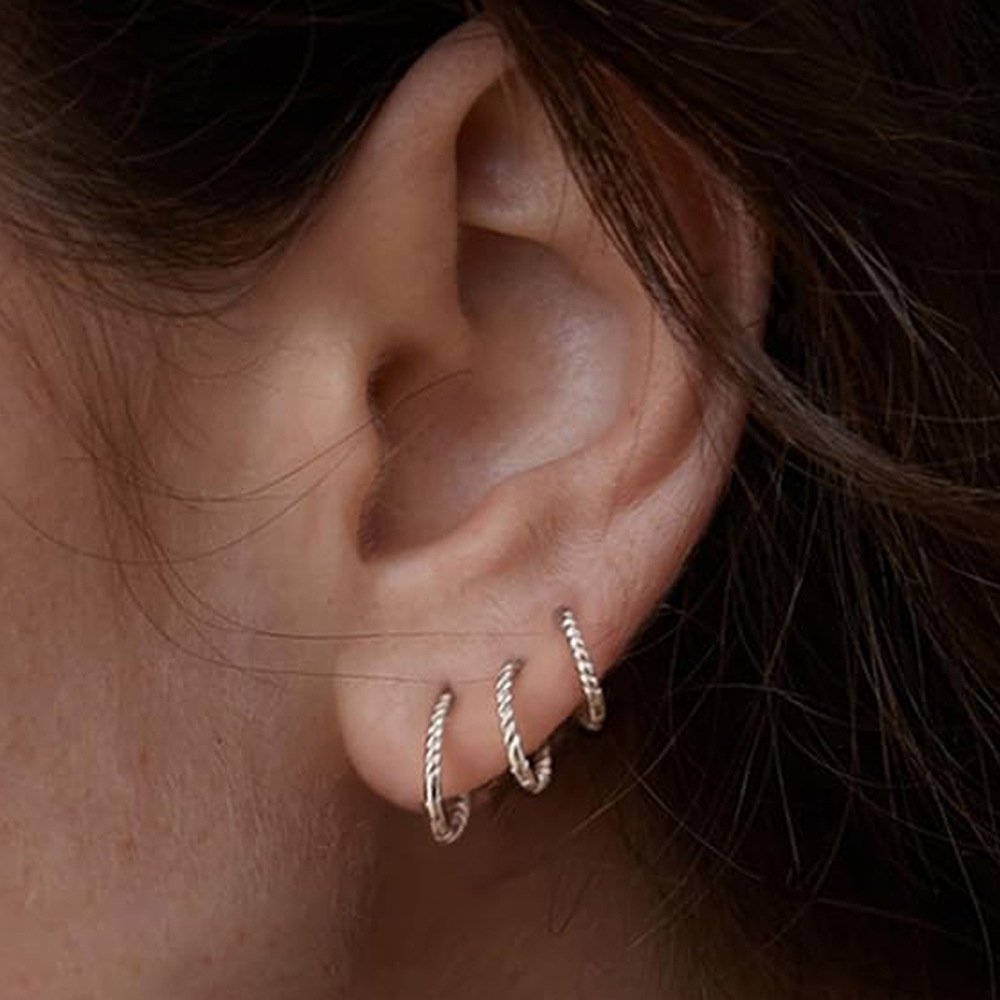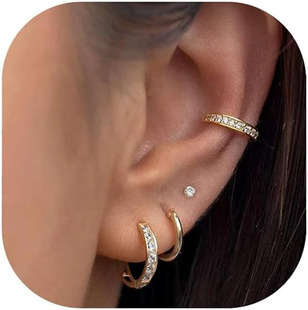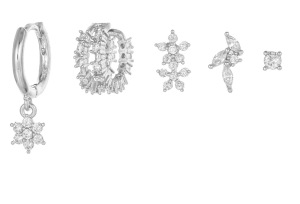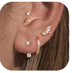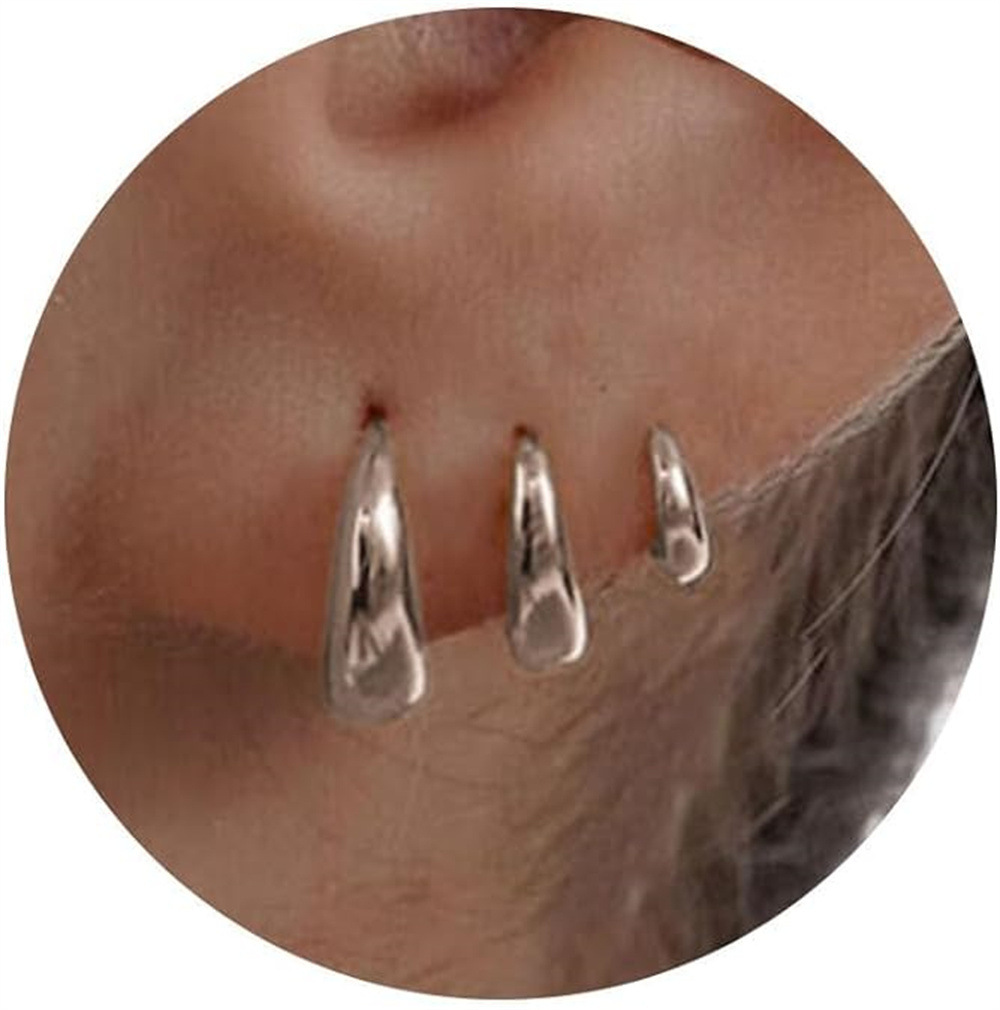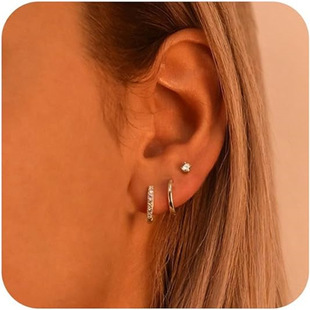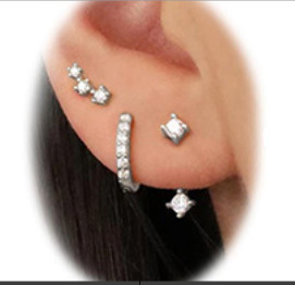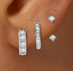 Color: Silver multi-piece set of 3 multi-piece hoop diamond earrings
