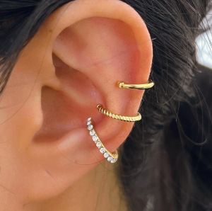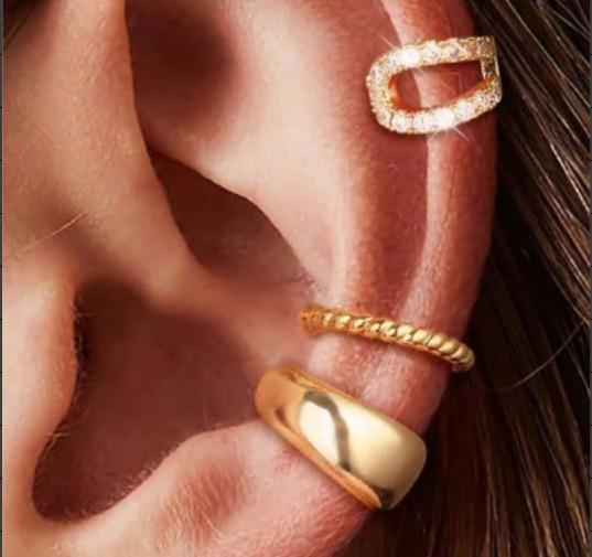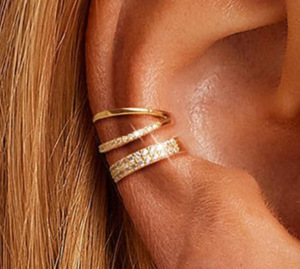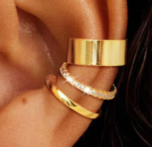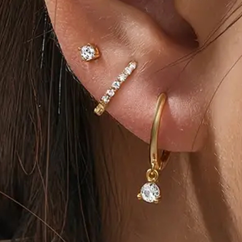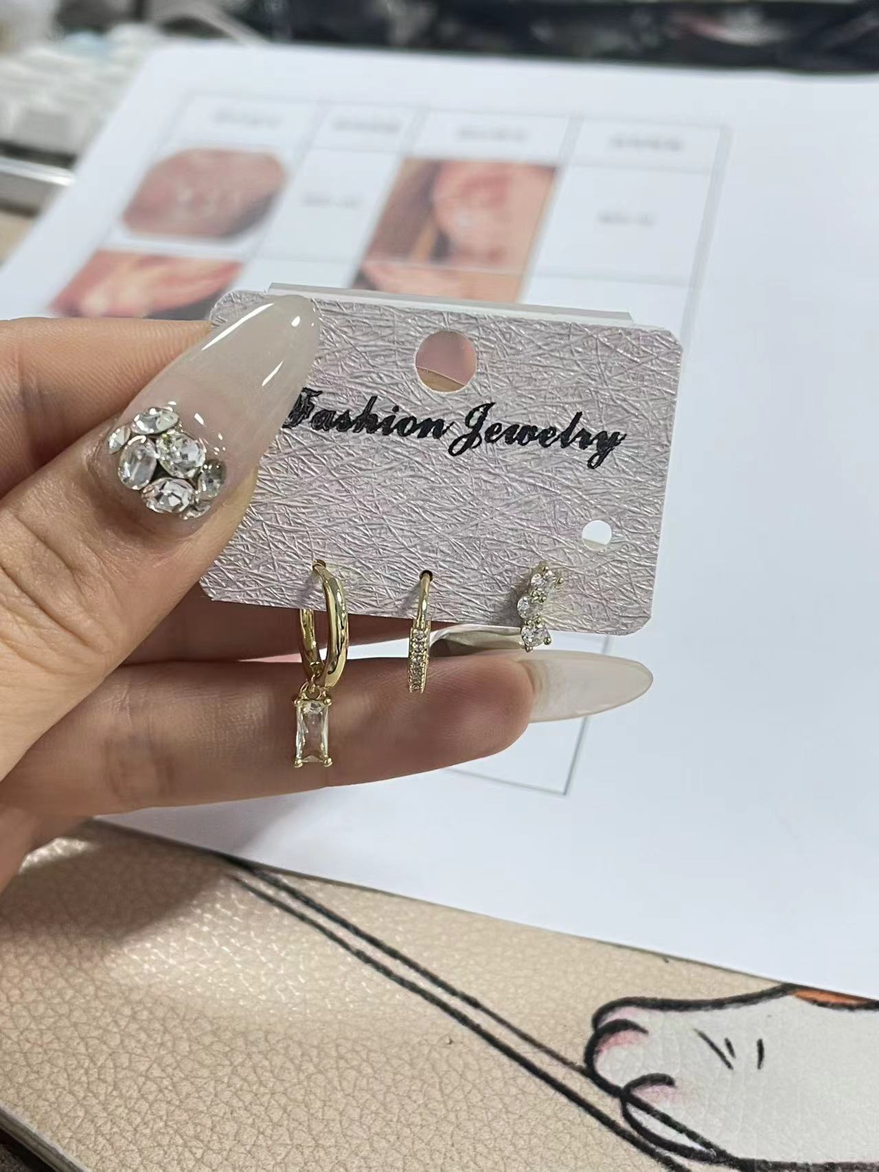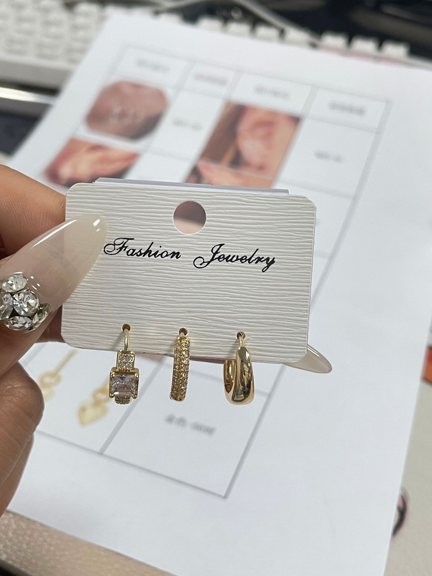 Color: Gold multi-piece set of 3 diamond-encrusted water drop three-piece set
