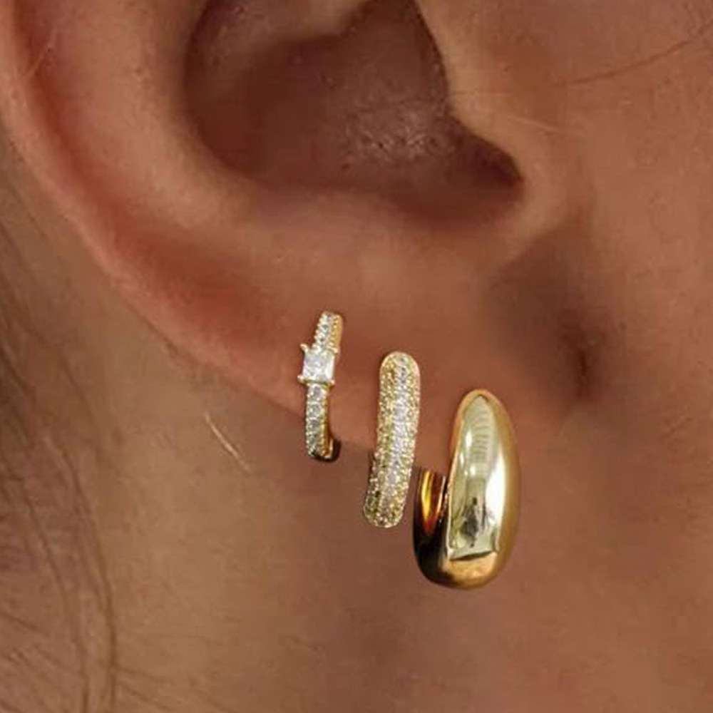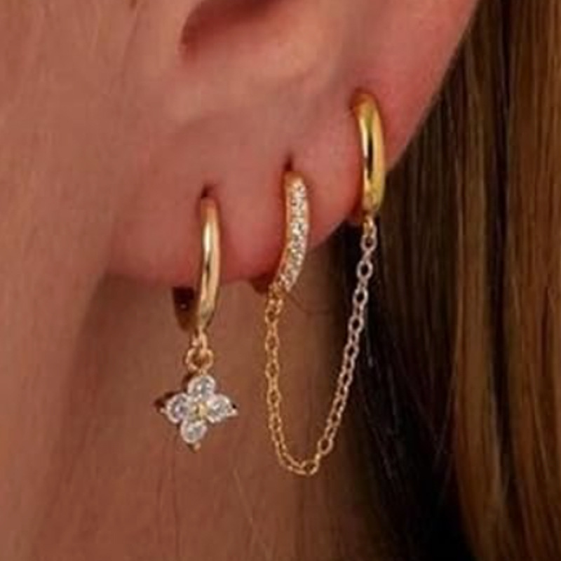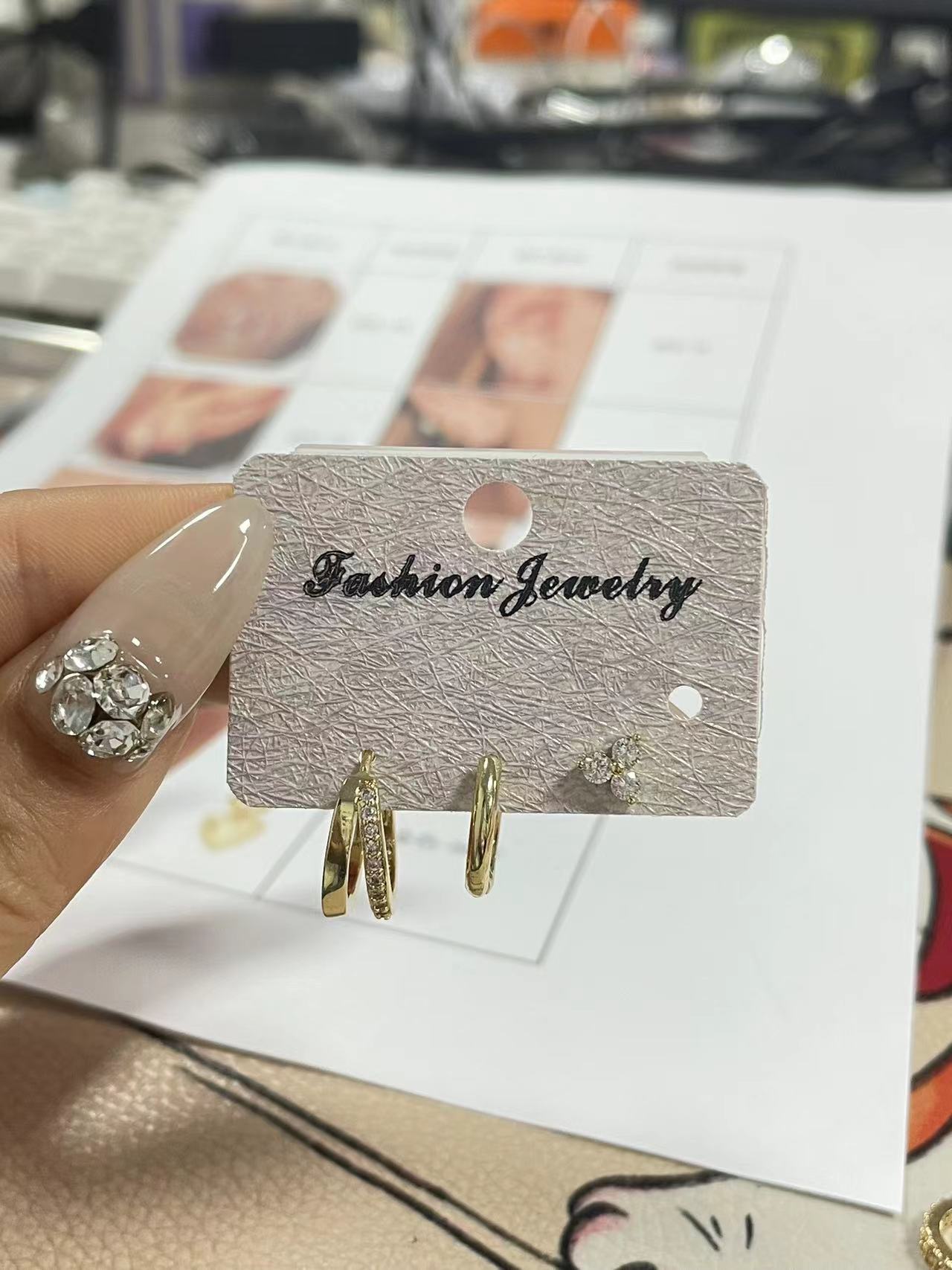 Color: Gold multi-piece set of 3 diamond-encrusted double water drop three-piece set