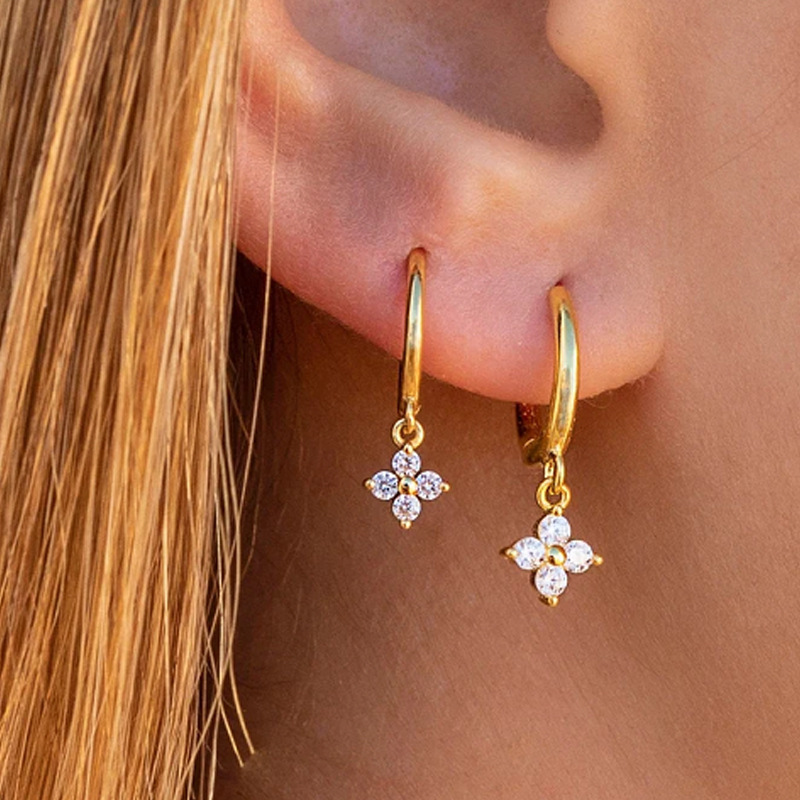 Color: Golden butterfly flower micropaved zircon stud earrings