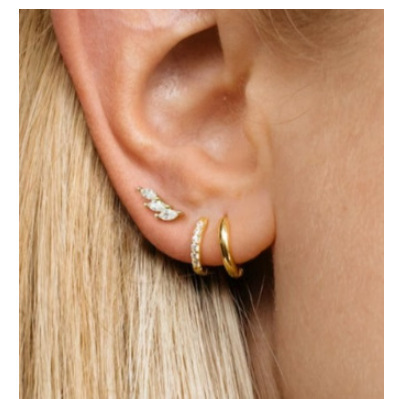 Color: Gold multi-piece set of 3 multi-piece three-leaf diamond earrings