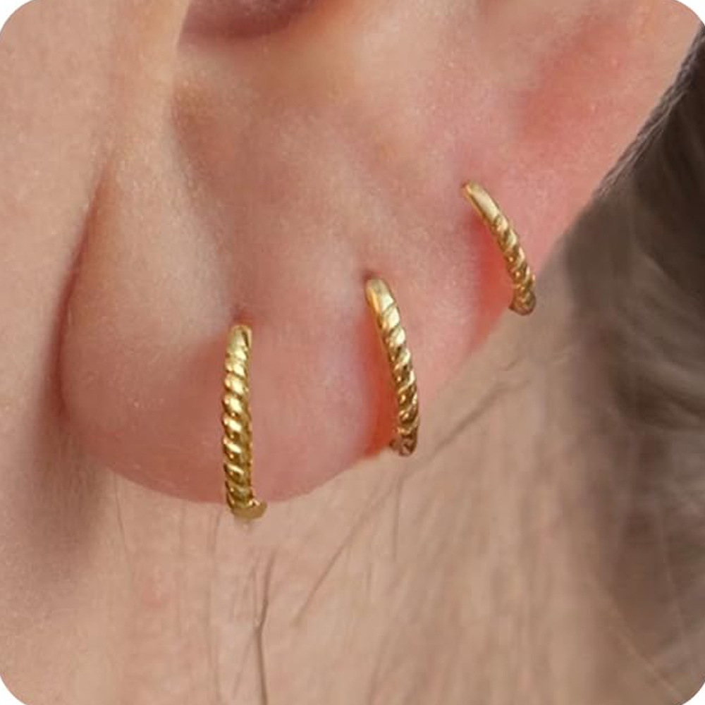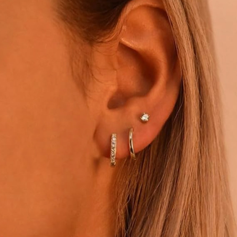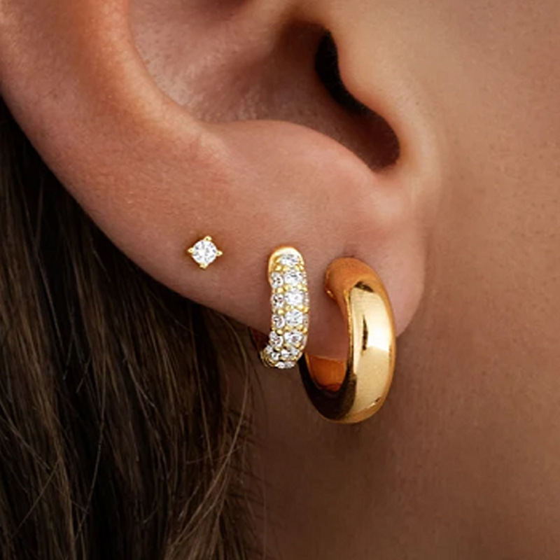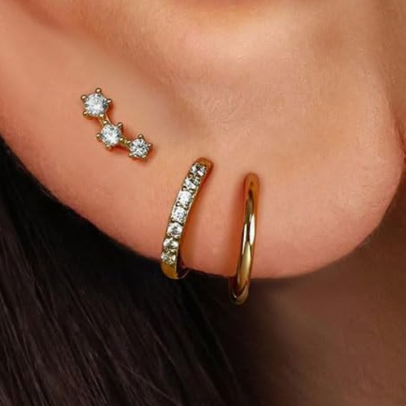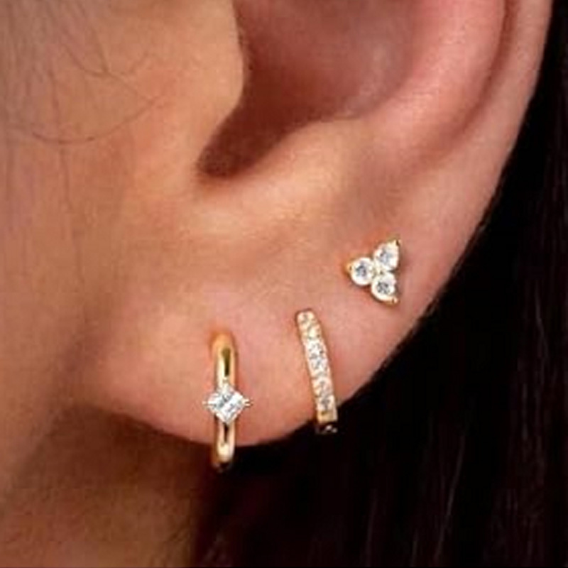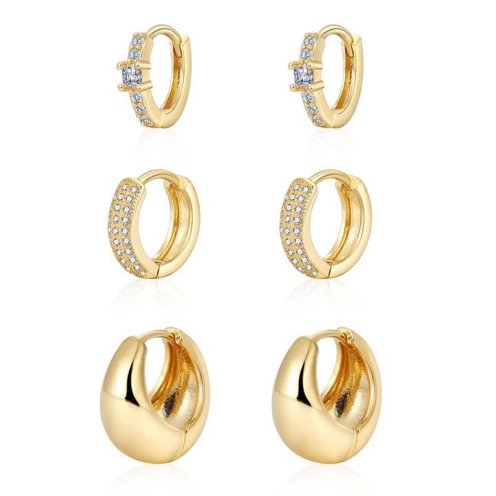 Color: Rose gold multi-piece set of 3 multi-piece hoop diamond earrings