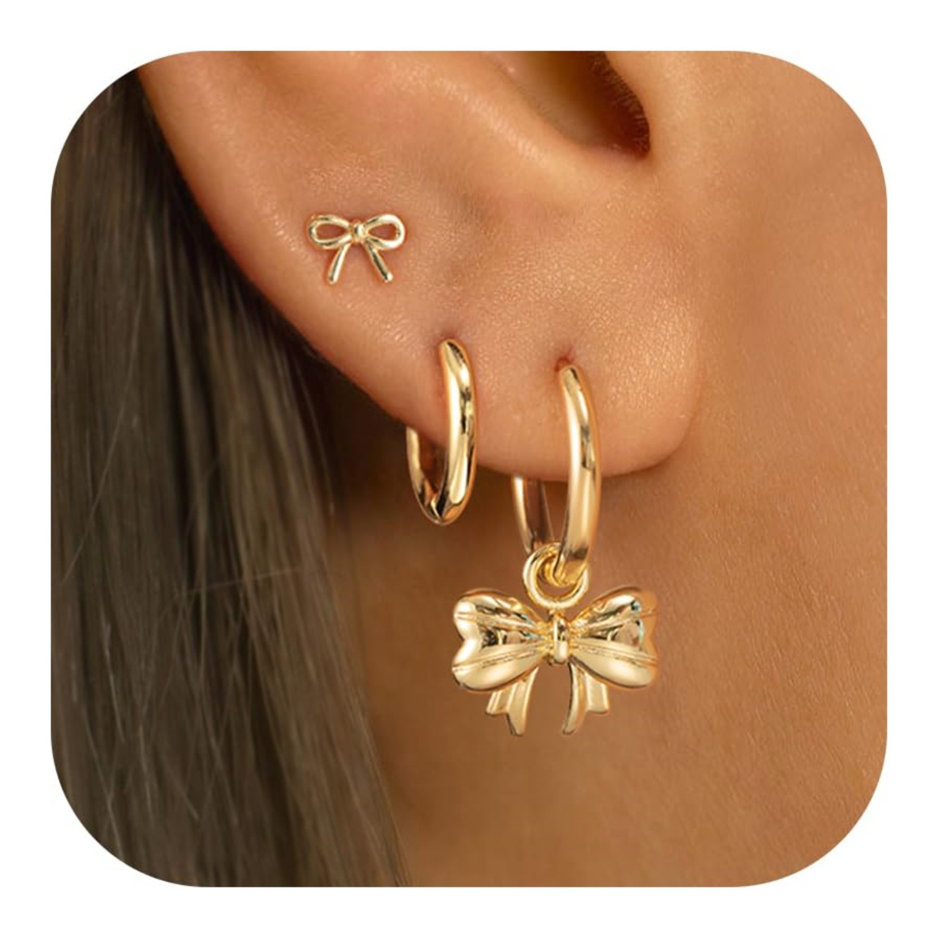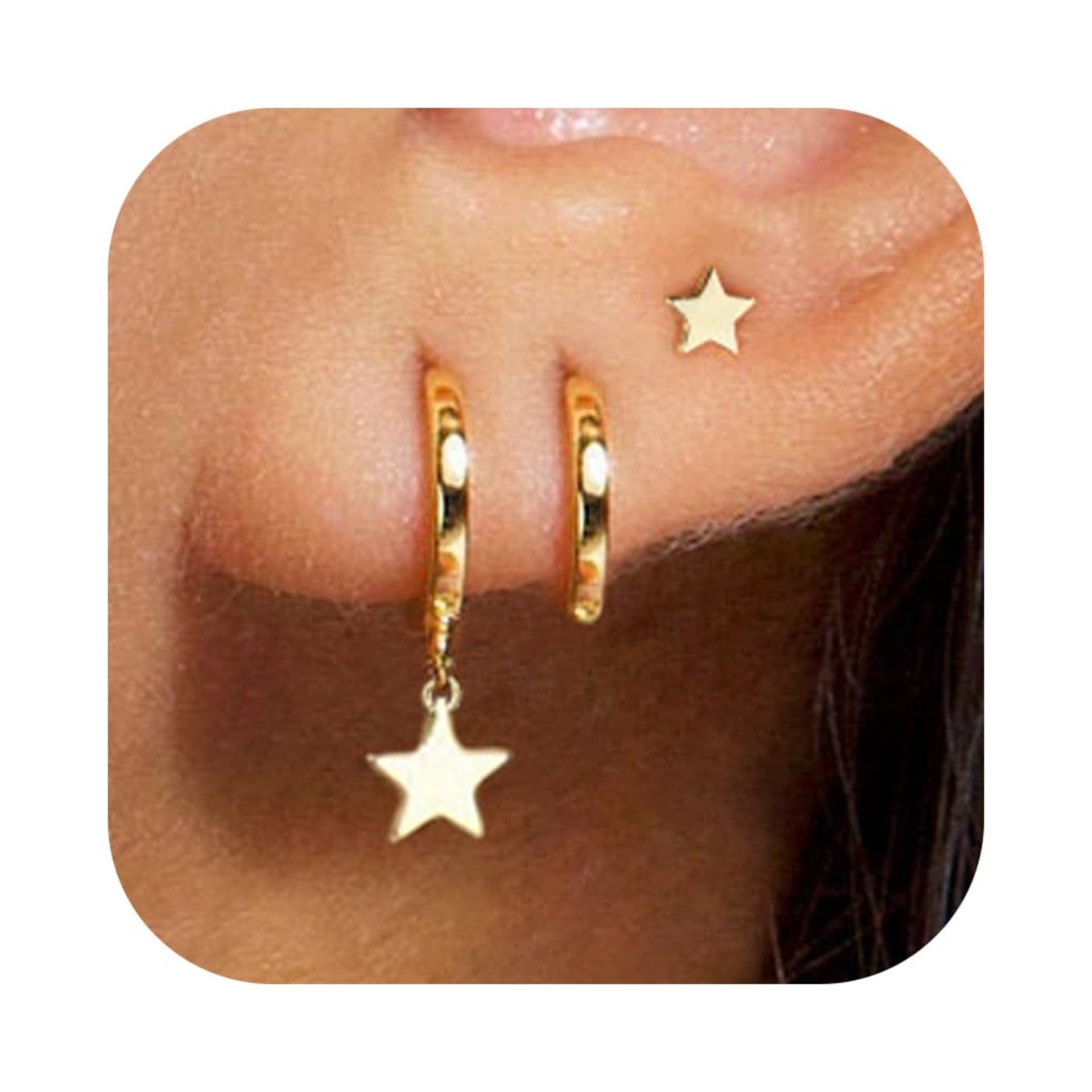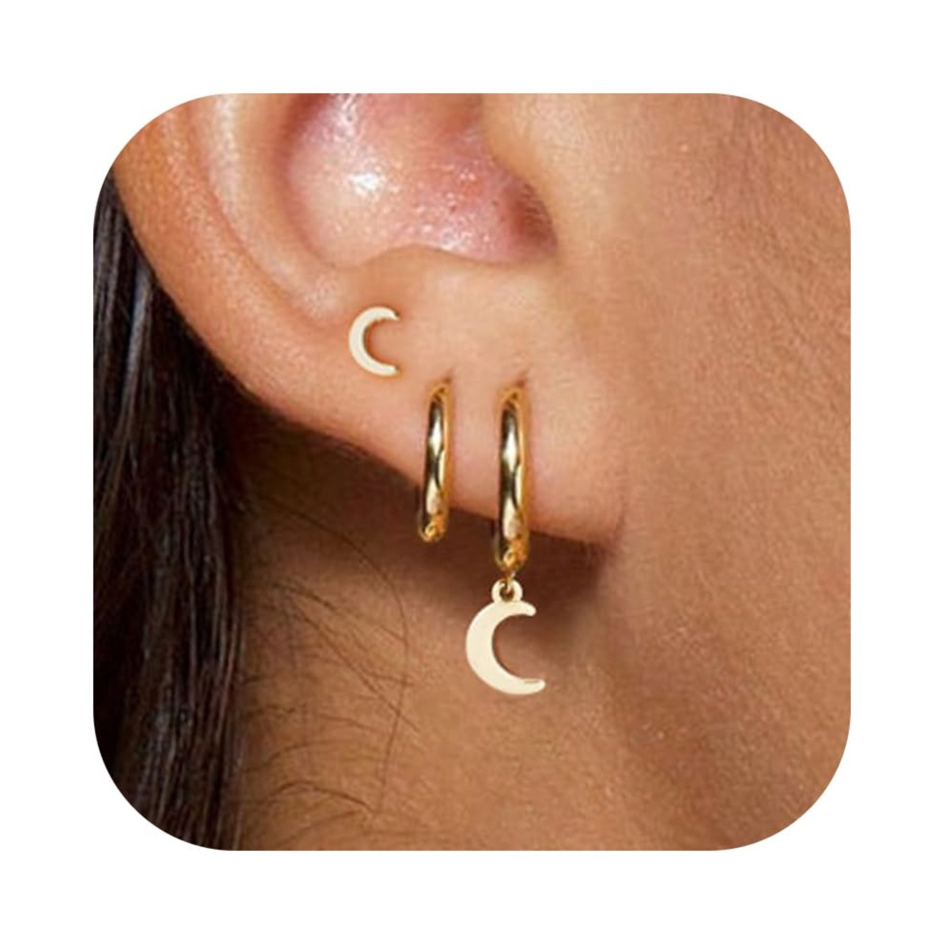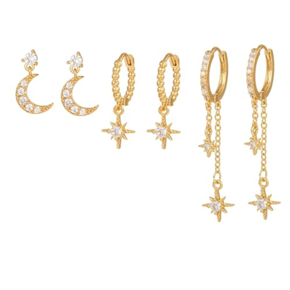 Color: Gold multi-piece set of 3 moon tassel earrings set