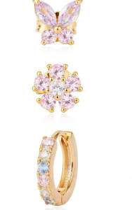 Color: Golden butterfly stud earrings 3 copper set with zirconia