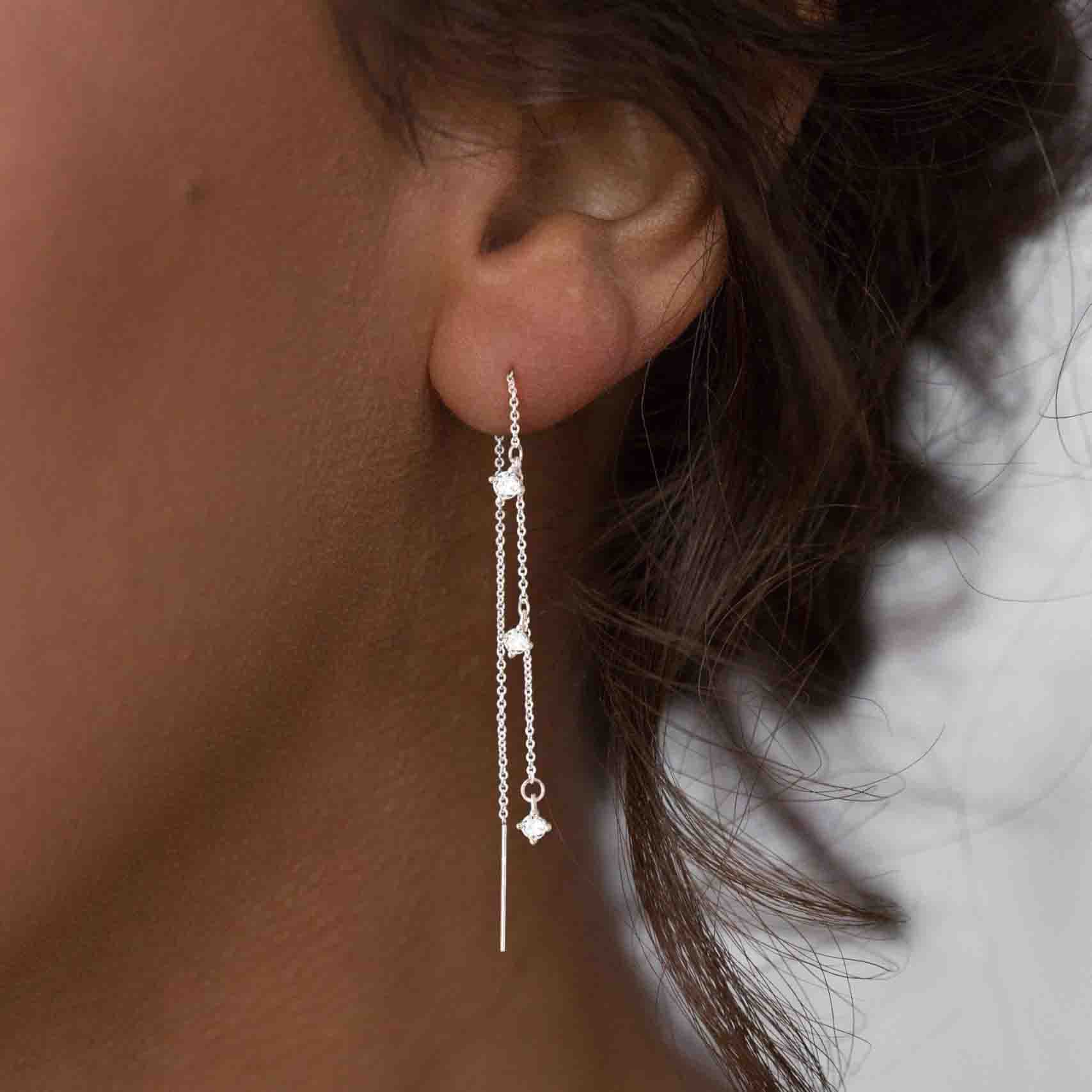 Color: Silver multi-piece set of 3 diamond-shaped earrings