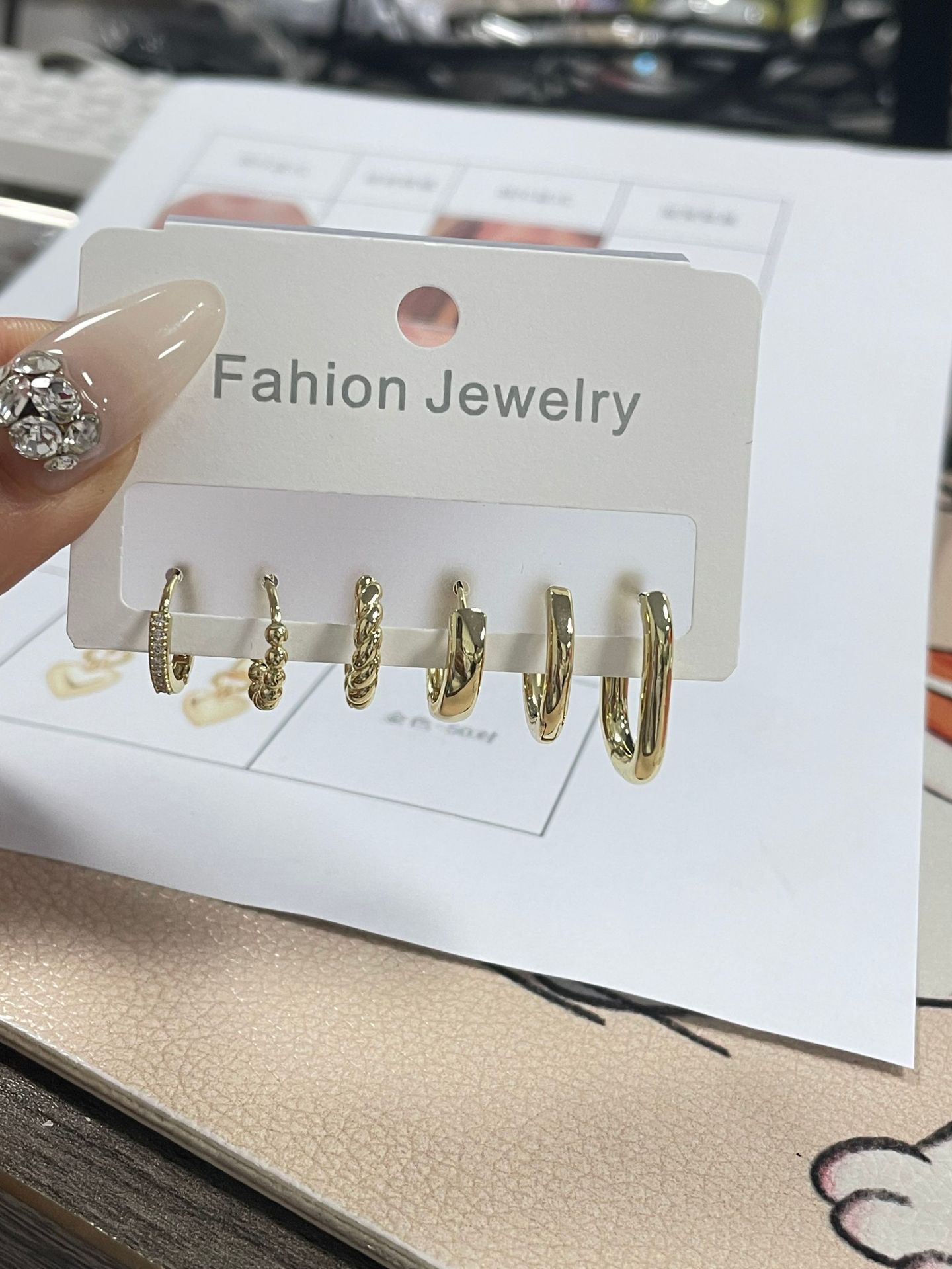 Color: Gold multi-piece set of 2 multi-piece glossy earrings