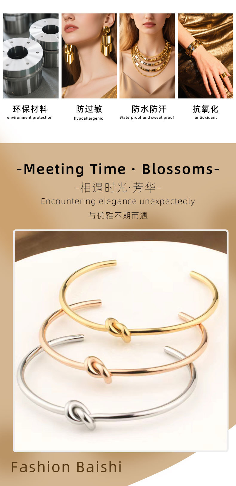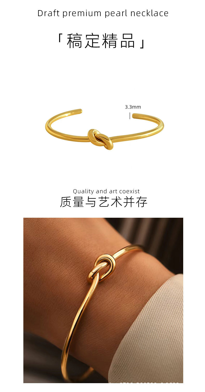 跨境欧美新款C型手镯女高级感不锈钢手镯打结3mm爱心扭线手饰品首饰简约