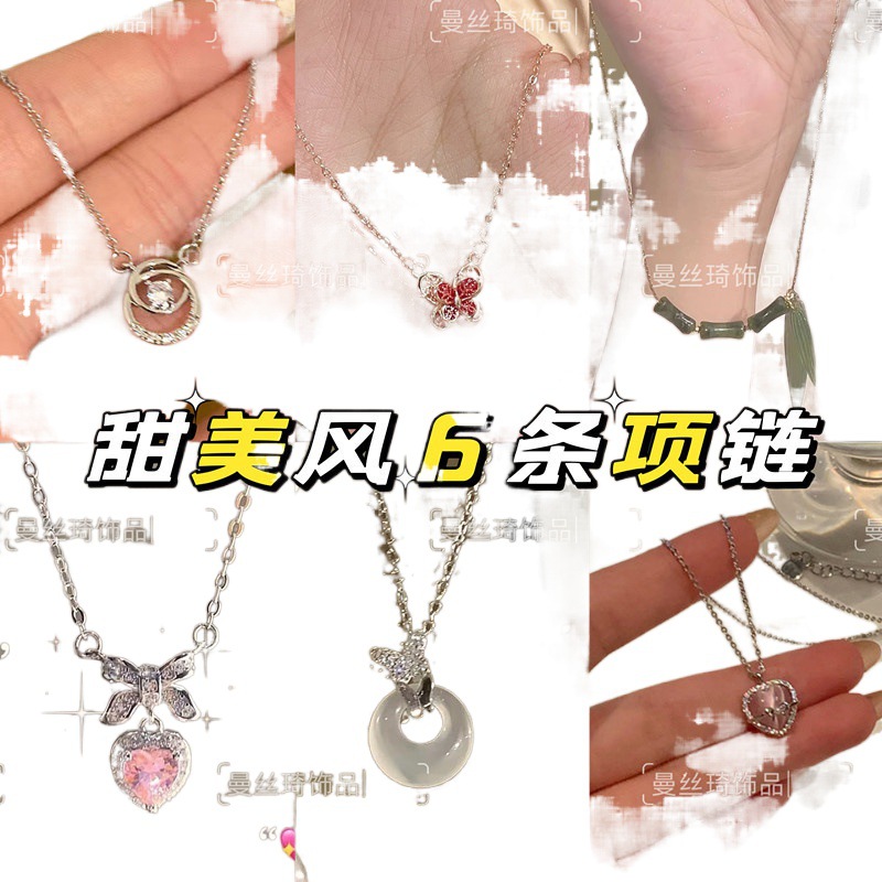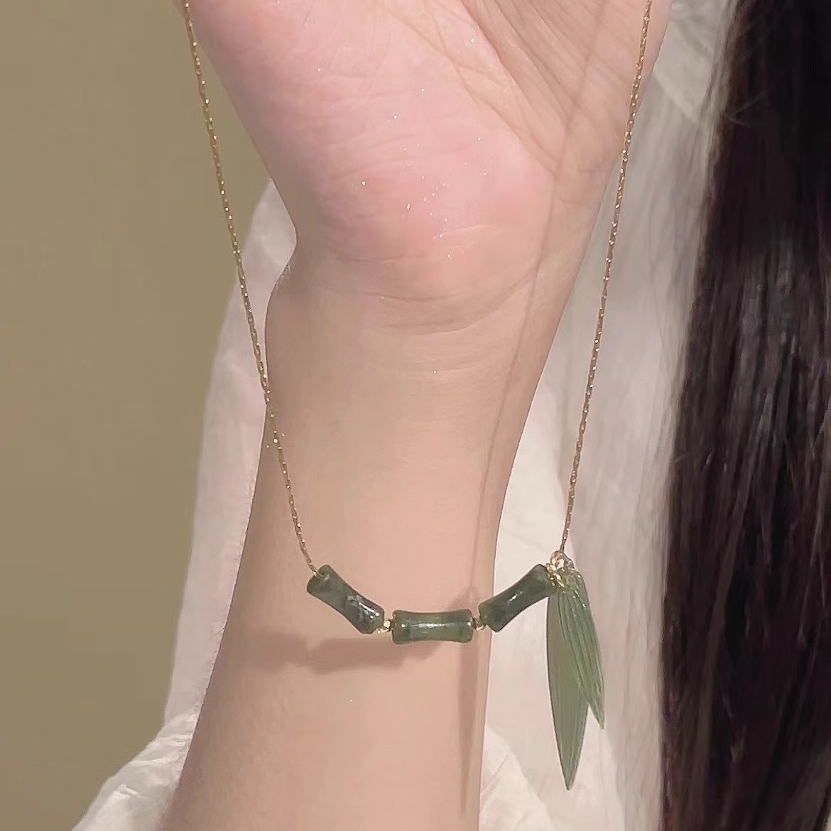 6 Necklaces Ink-dyed Green Bamboo National Style New Chinese Bamboo Necklace Girls 2024 Explosions Neck Chain Niche