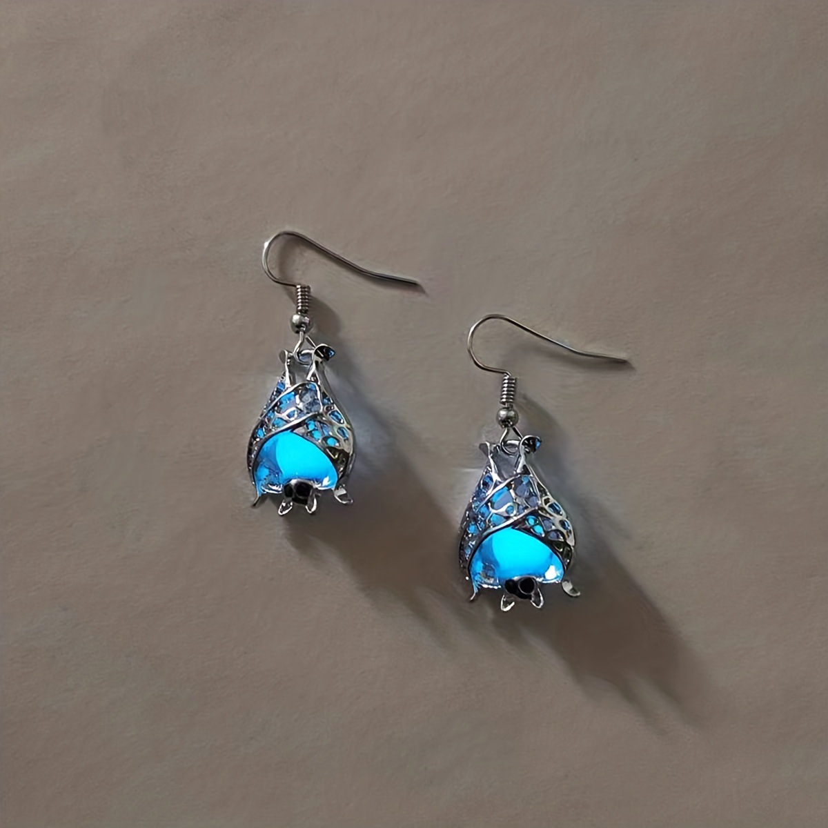 Hollow Luminous Bat Earrings Niche Personality Horror Exaggerated Dark Gothic Jewelry Wholesale Luminous Elements