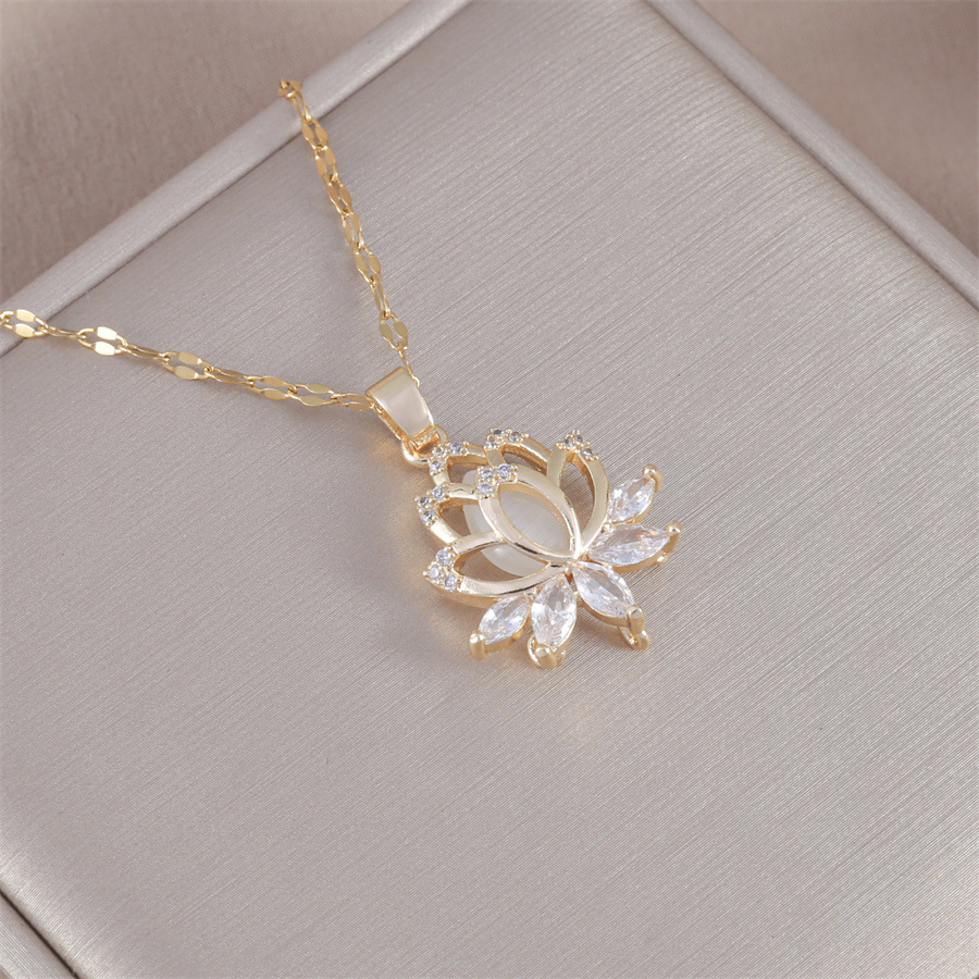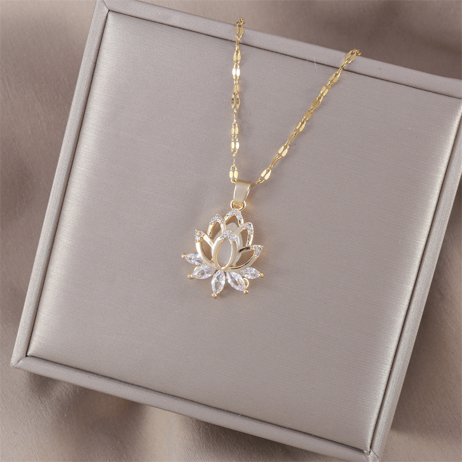 Fashion Cross-border Jewelry Lotus Zircon Titanium Steel Necklace Copper Niche Light Luxury Necklace TEMU Xiyin Amazon Hot Sale