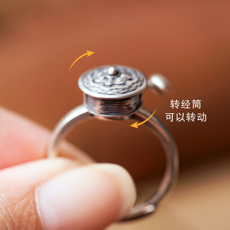 New Turning Sutra Ring for Boys and Girls with Palace Turning Heart Sutra Six-character Mantra Sutra Ring Jewelry Hand Ornaments