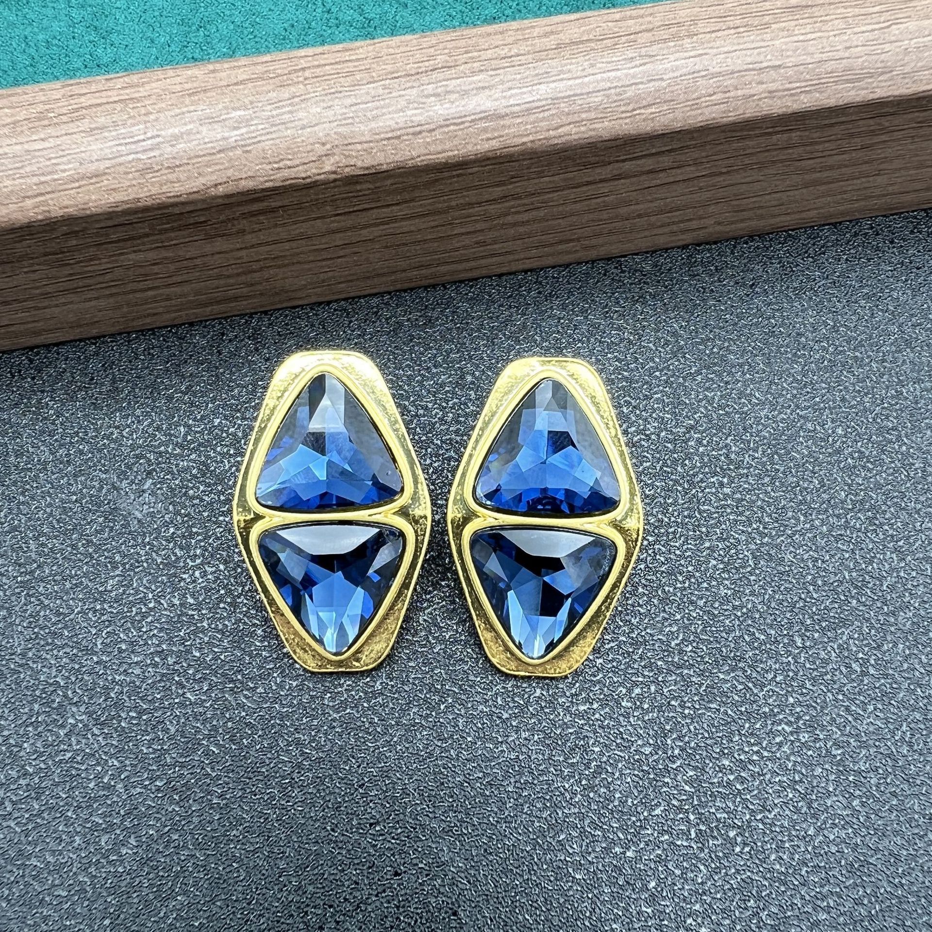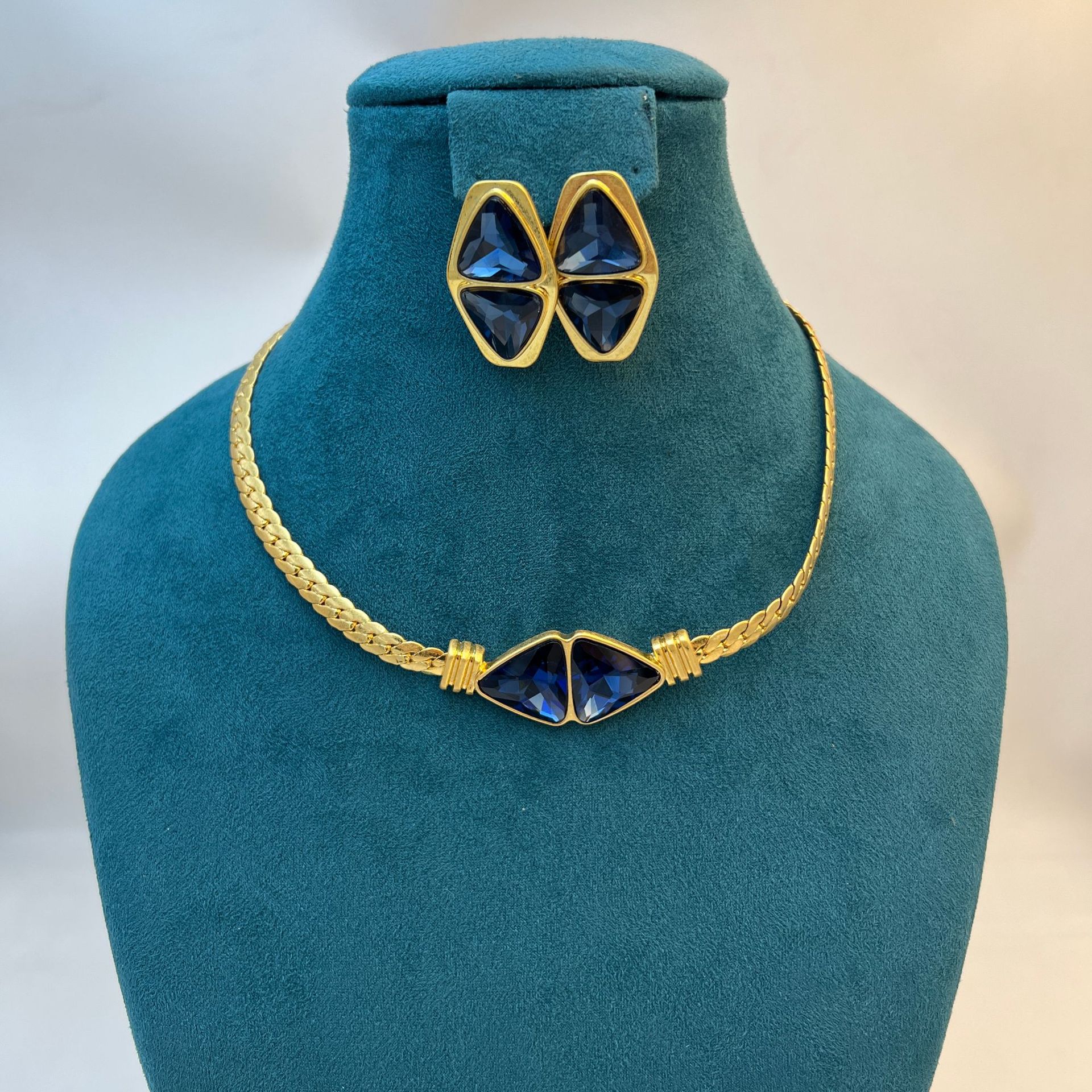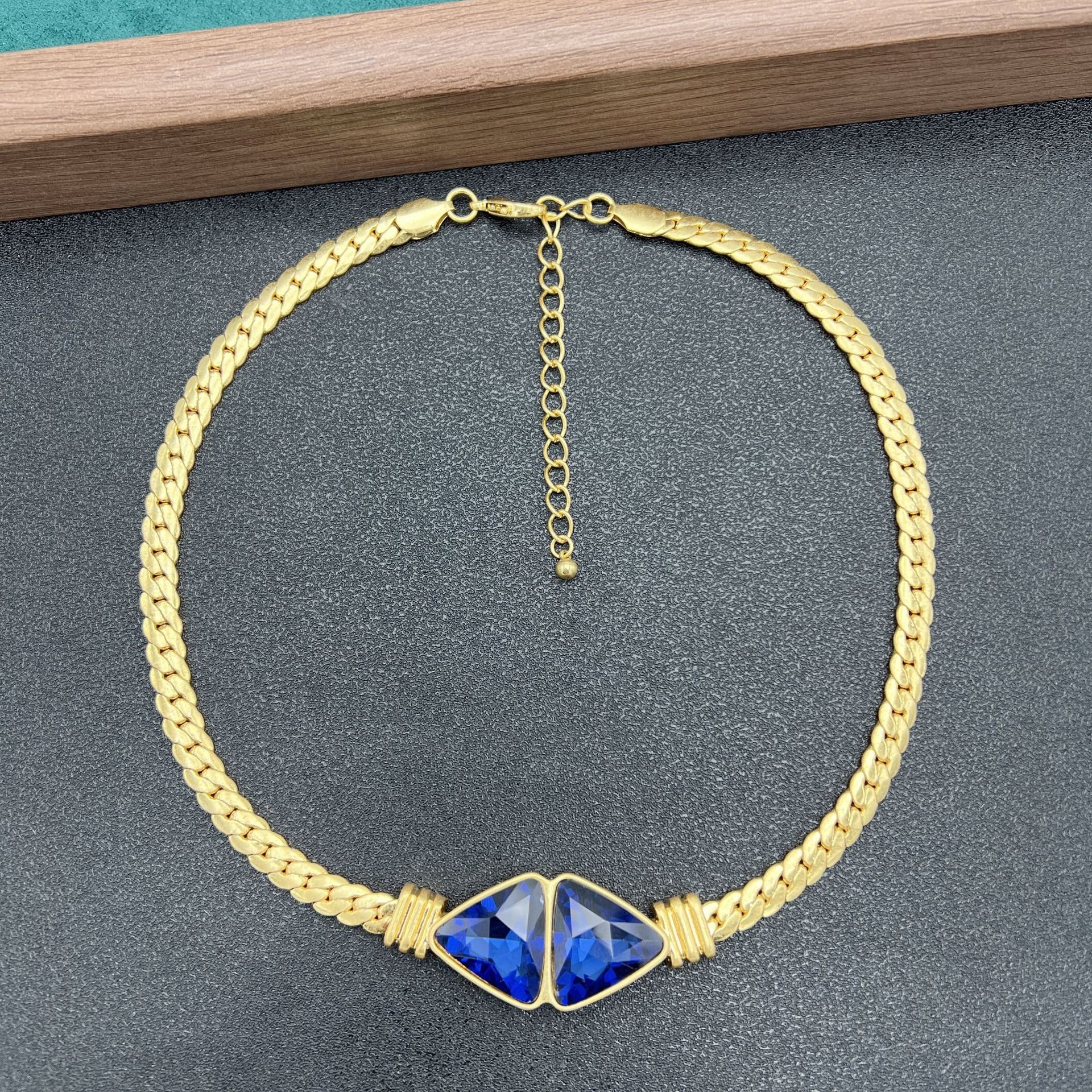 Middle Ancient vintage Real Gold Electroplated Copper Chain Alloy Retro Heavy Industry Blue Glass Women's Necklace Earrings suit
