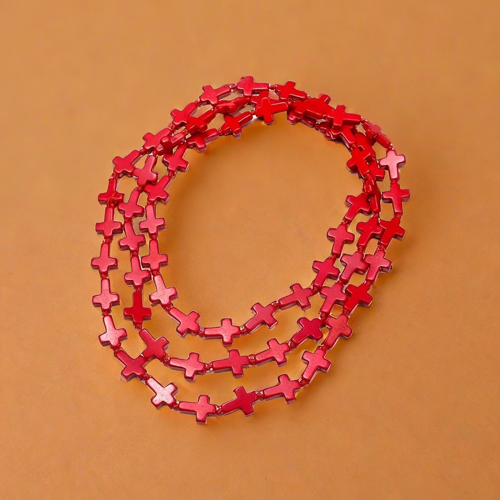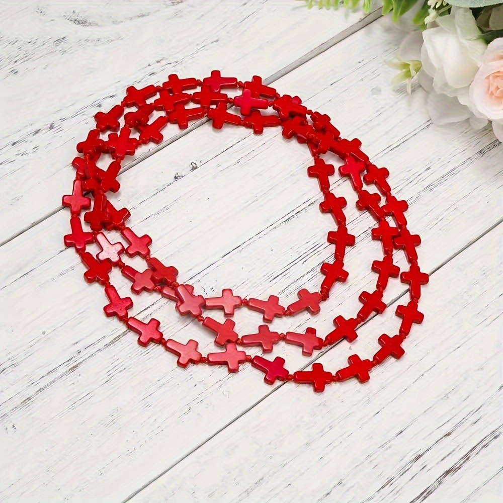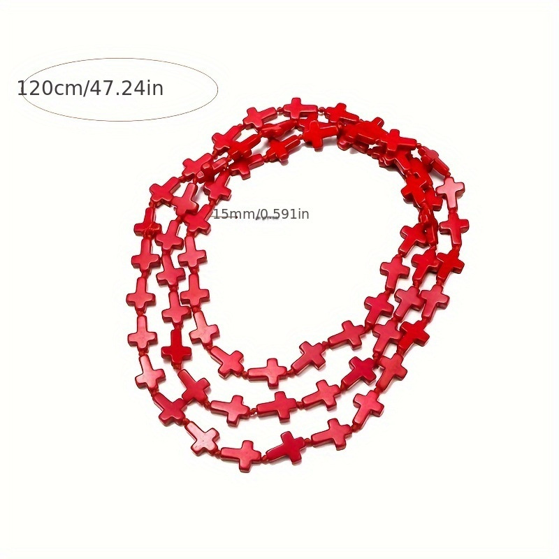 Bohemian vintage long red pine stone necklace original design national style hand knotted long necklace cross