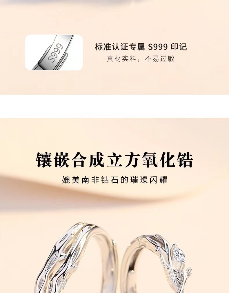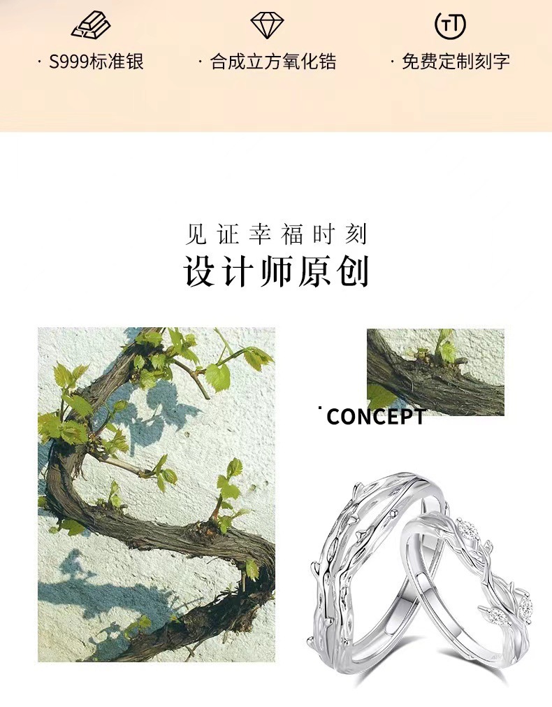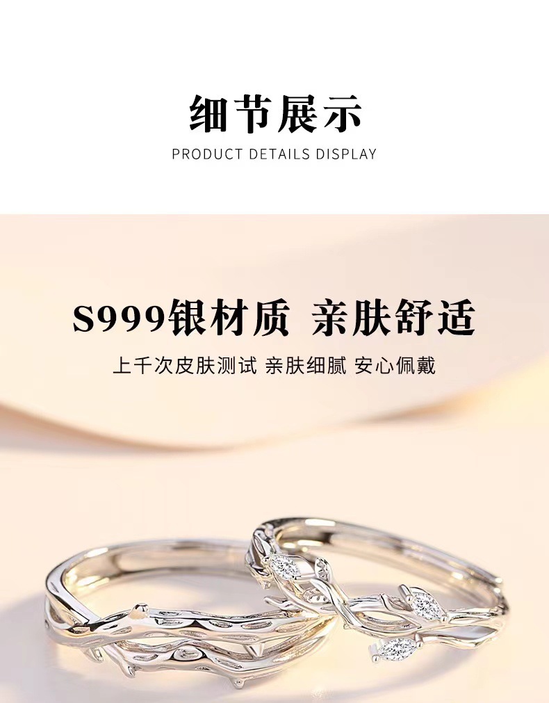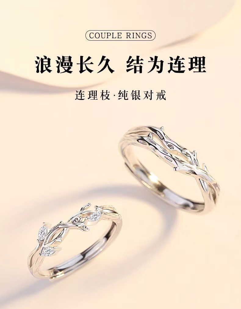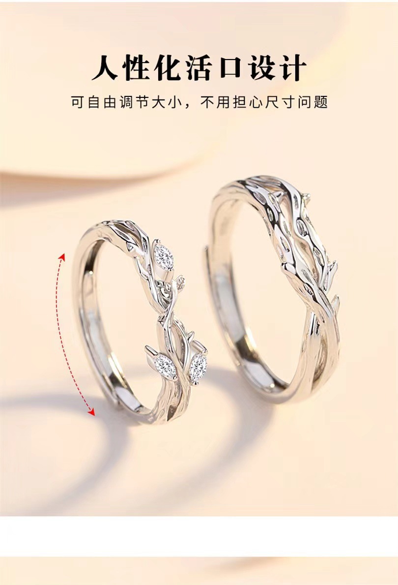 Lianlizhi Couple Ring Men's and Women's Ins Niche Design Fashion Simple Thorn Ring Branch Opening Ring