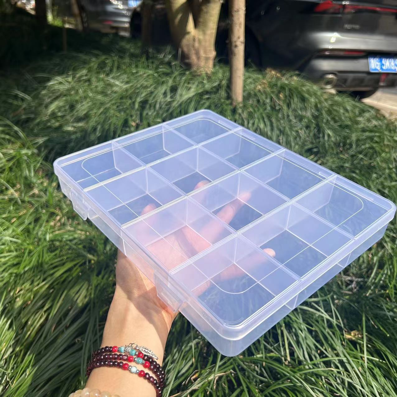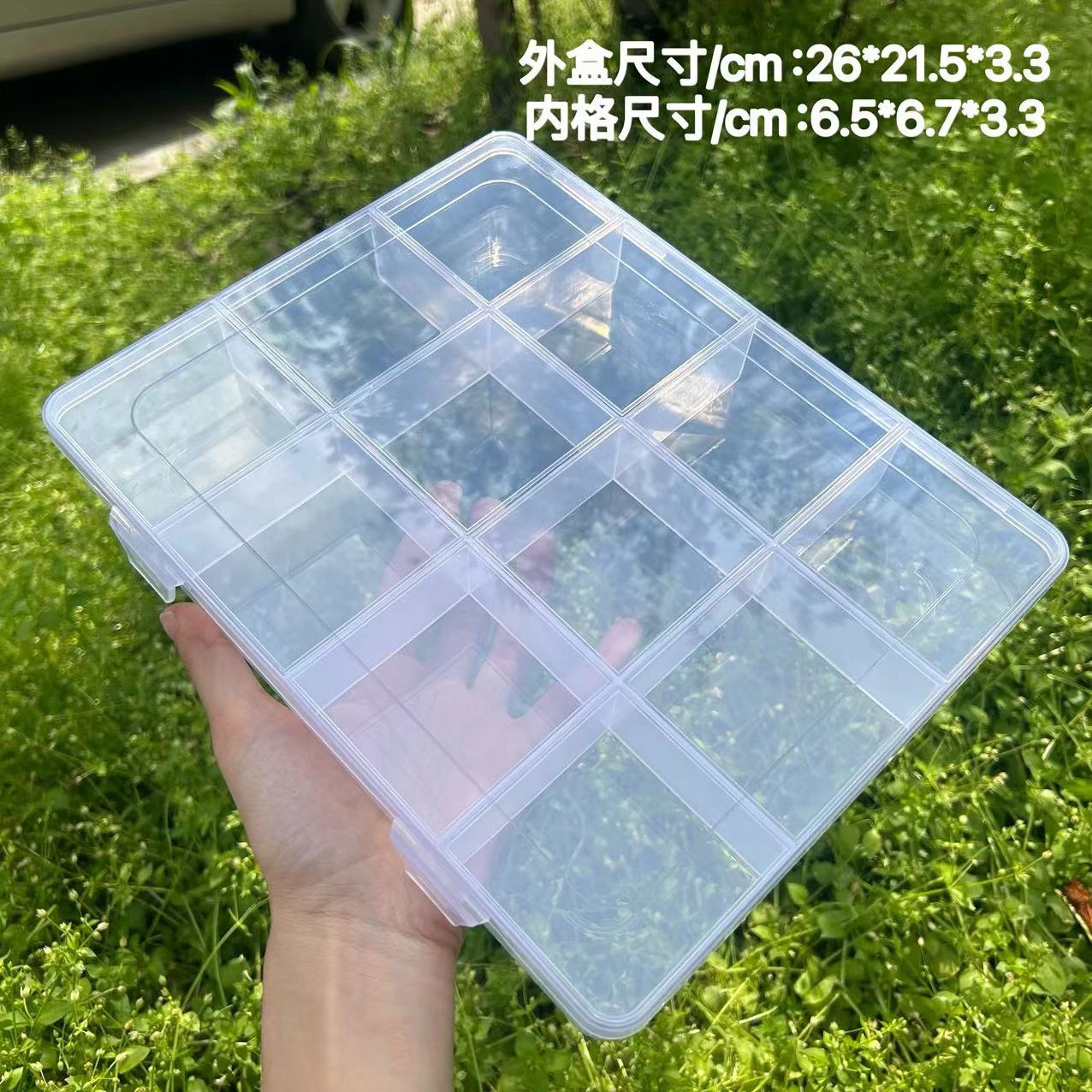 Large 12-compartment Storage Box with Card Slot Fixed-compartment Large-capacity Glazed Rice Beads DIY Accessories Jewelry Transparent Whole