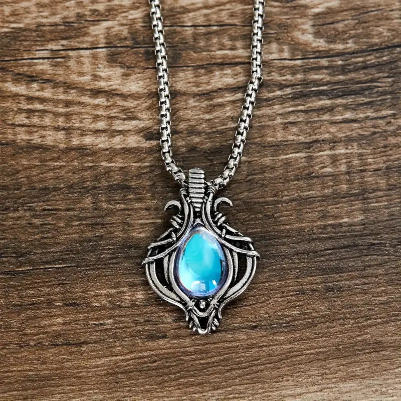 Cross-Border Temu Popular Retro Moonstone Cut Out Water Drop Pendant Necklace Bohemian Ladies Personalized Necklace