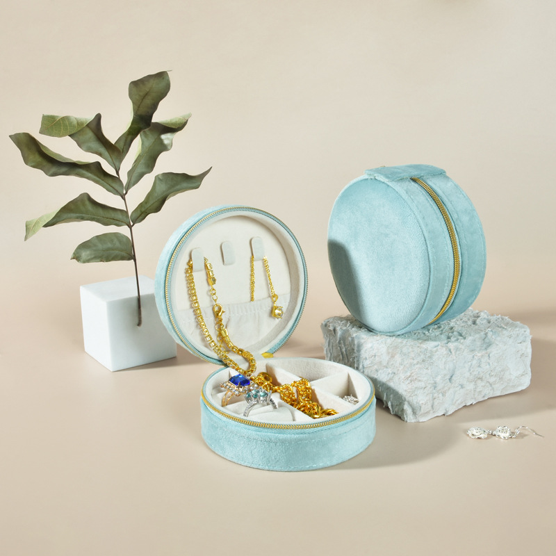 Specifications and models: Round - light cyan; velvet jewelry bag
