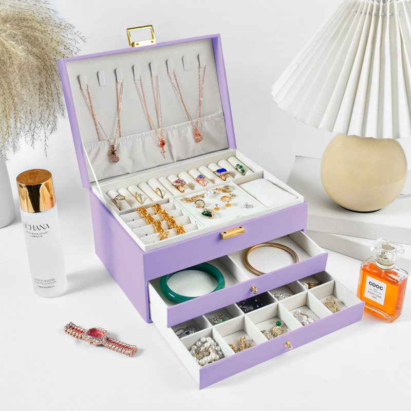 Specifications and models: Three layers without mirror - light purple color; jewelry box