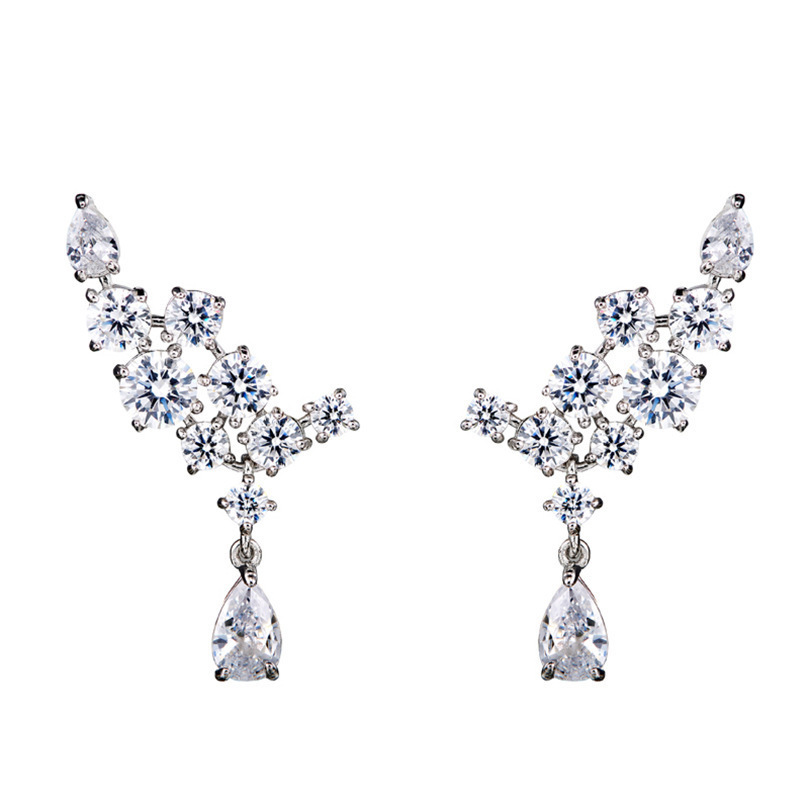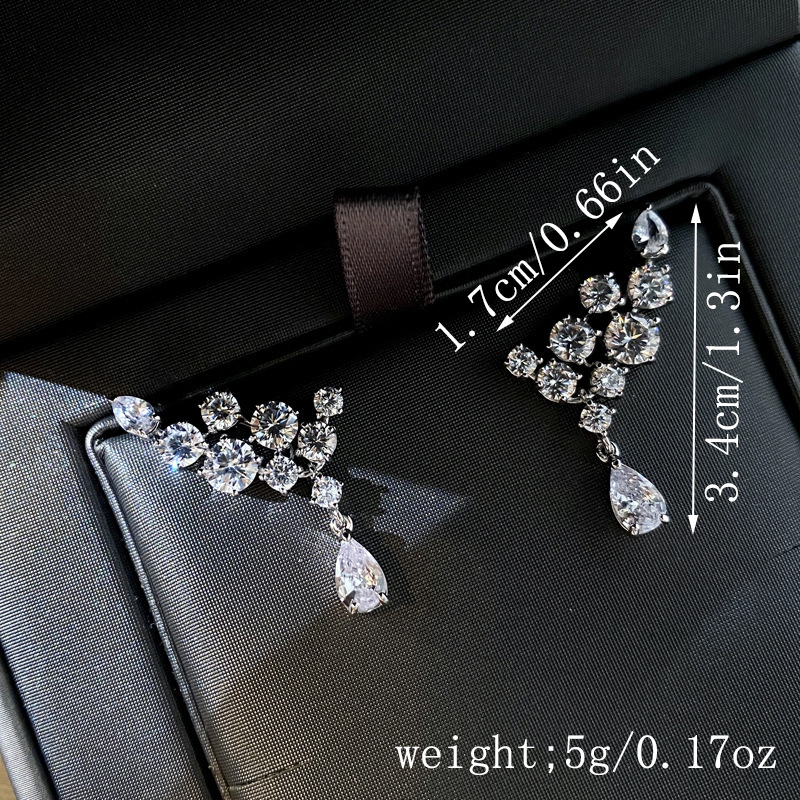 Cross-border supply of ultra-flash zircon platinum wings water drop earrings women's dinner luxury full diamond European and American earrings wholesale