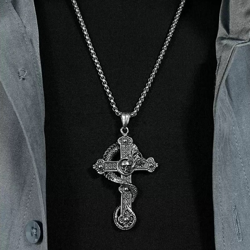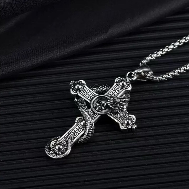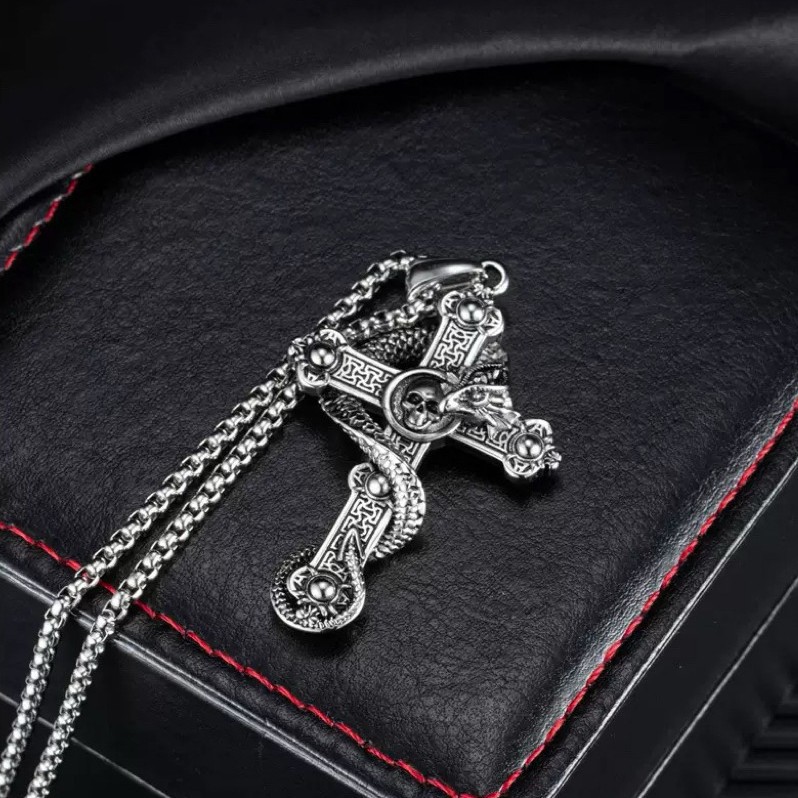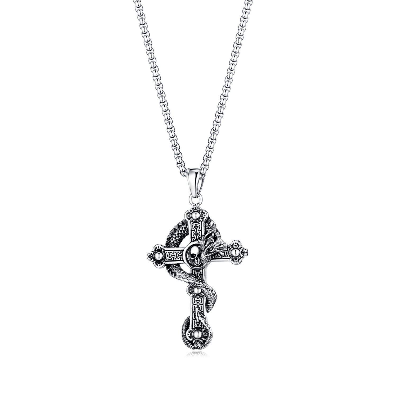 European and American jewelry new retro titanium steel skull cross pendant personality hip-hop panlong men's necklace wholesale