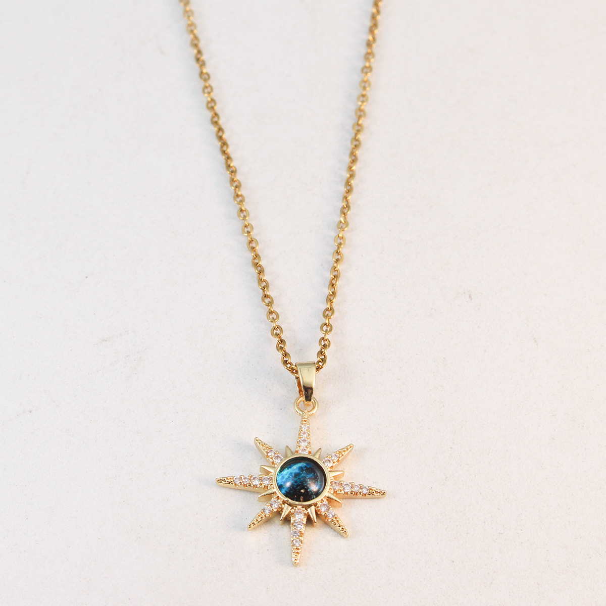 [Titanium Steel] Blue Planet Star Light Luxury Elegant Diamond Necklace Women's All-match Clavicle Chain Titanium Steel Chain