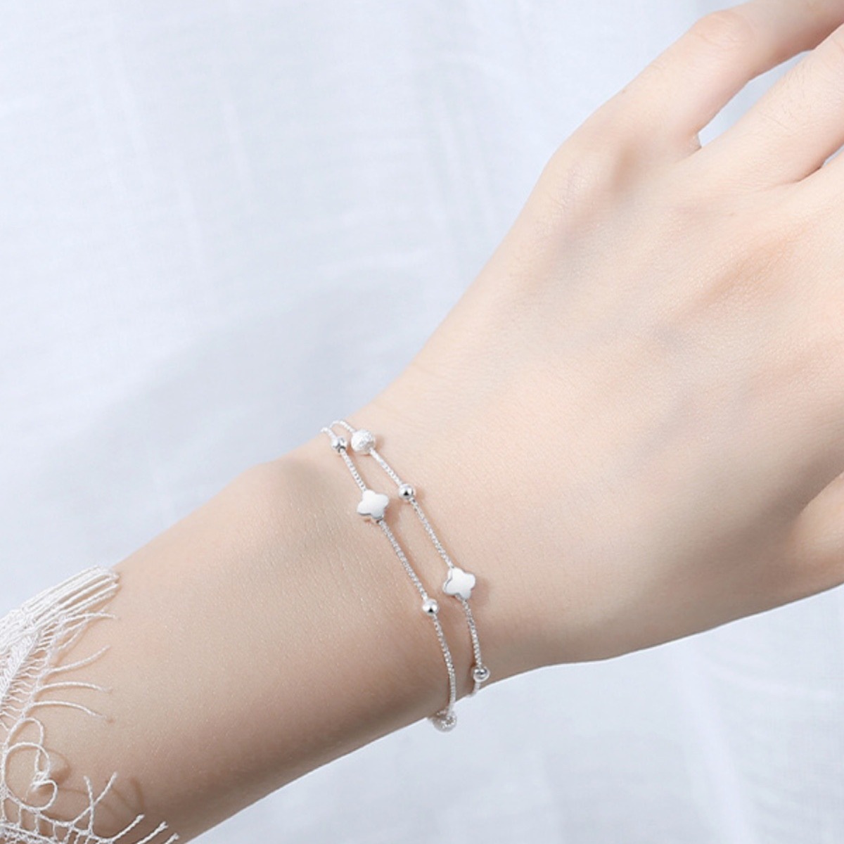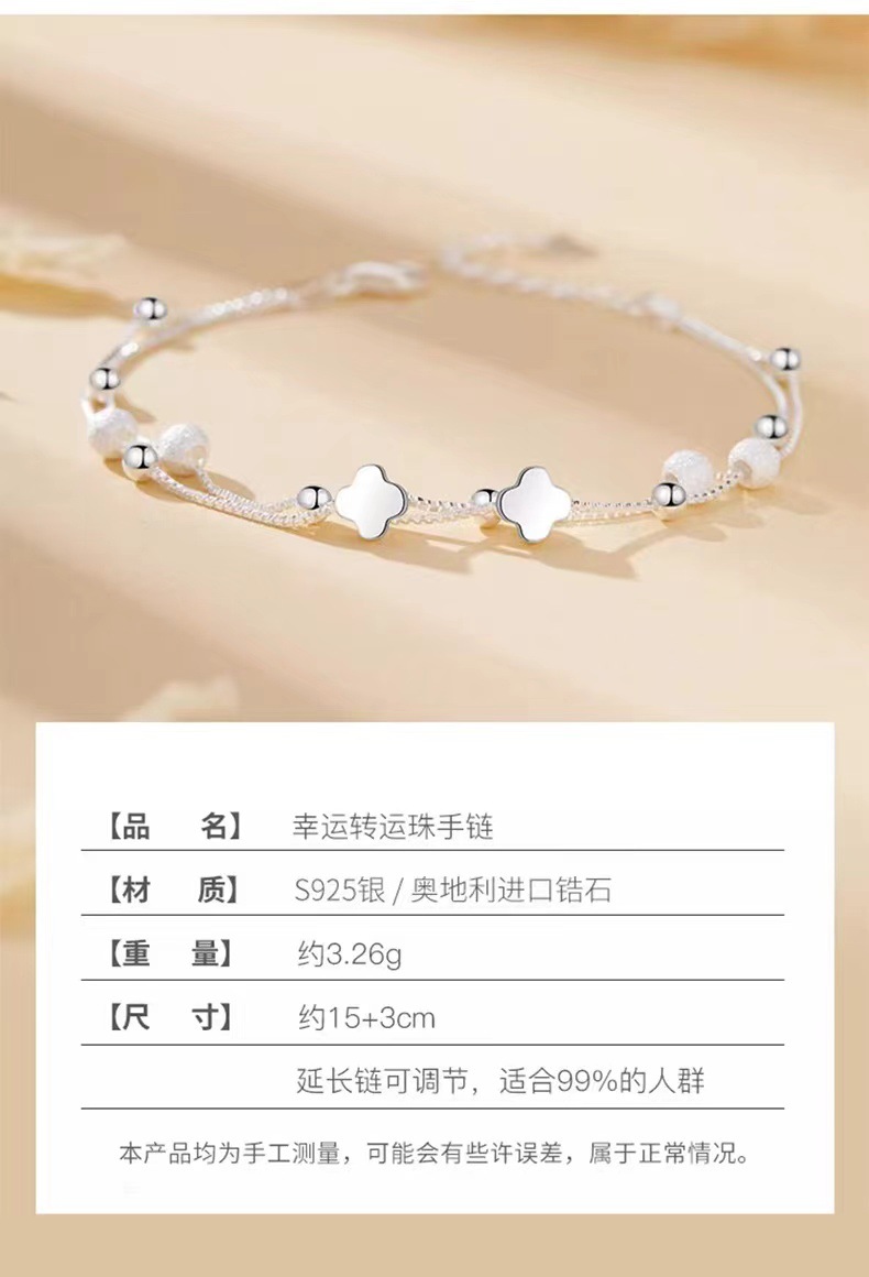 Item No.: SL258-Silver-four-leaf clover bracelet